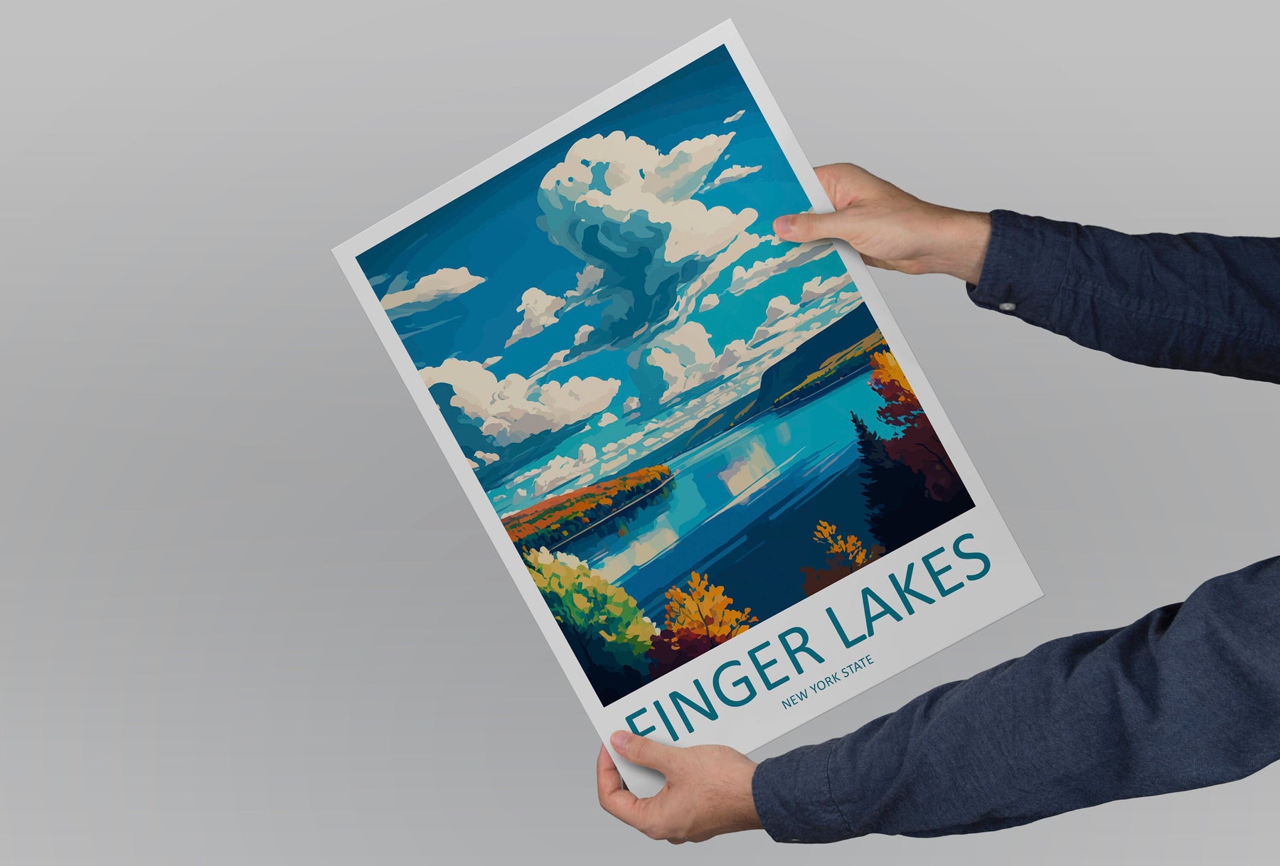 Finger Lakes Art Print, Landscape Wall Art, New York State Travel Poster, Nature Decor, Rustic Cabin Art, Gift for Hikers