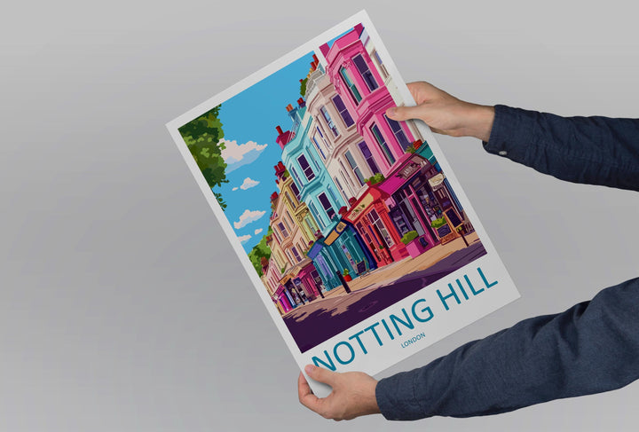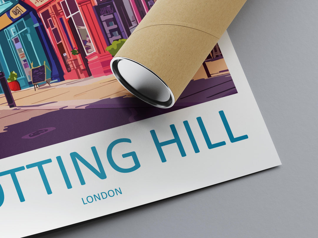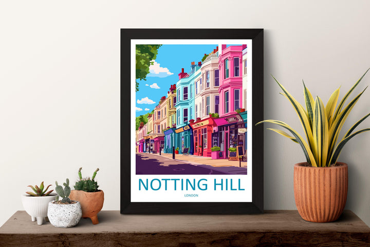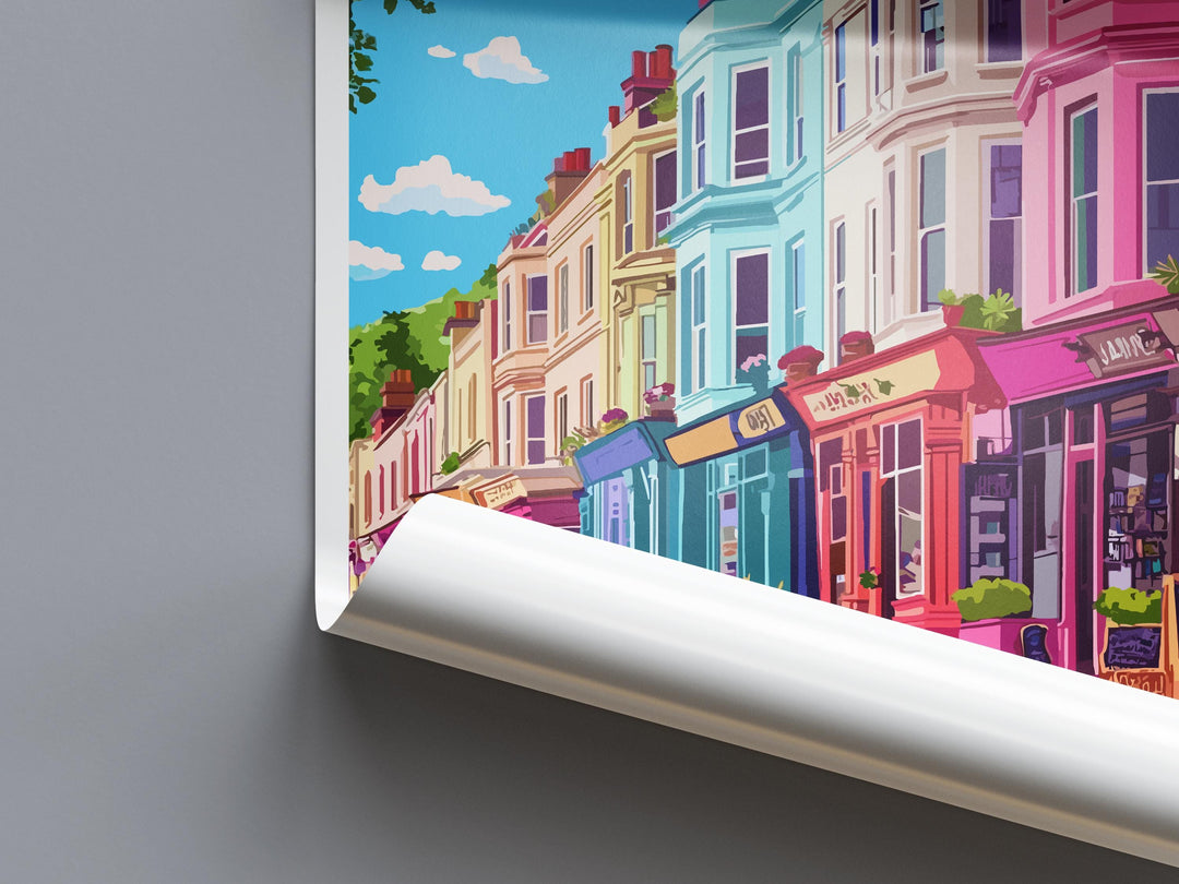 Notting Hill Travel Poster London Wall Art Colourful Street Print West London View Illustration Urban Decor Notting Hill Gift Scene