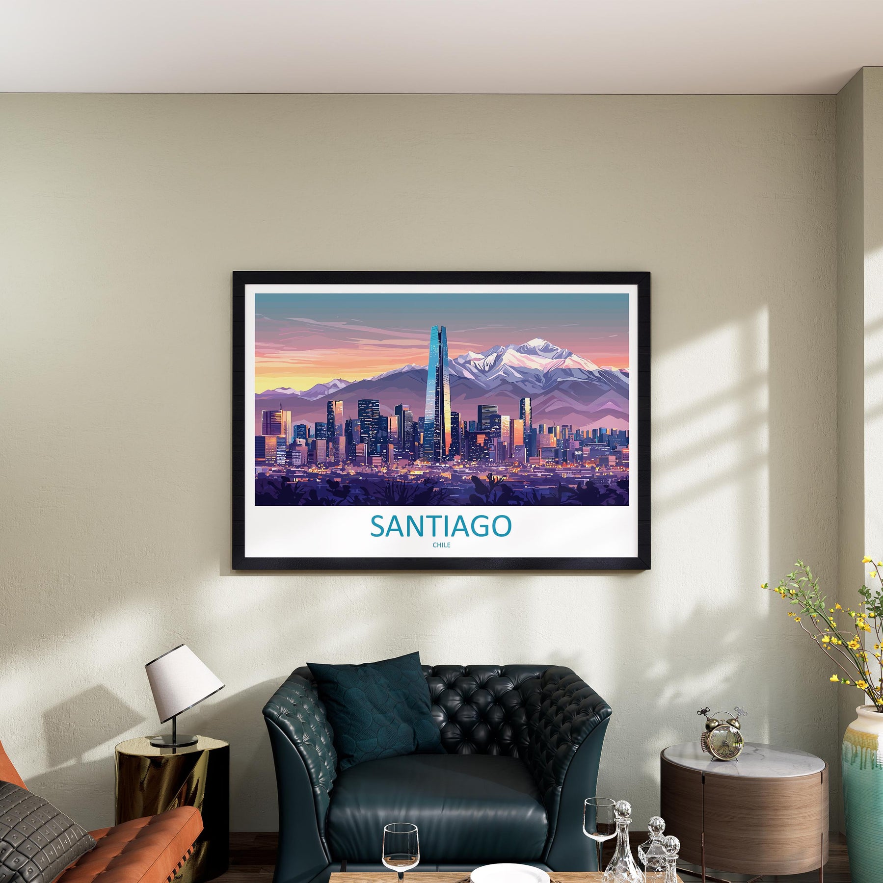 Santiago Chile Landscape Travel Poster Scenic Andes Mountain Skyline Wall Art Modern City Print South America Decor Santiago Artwork