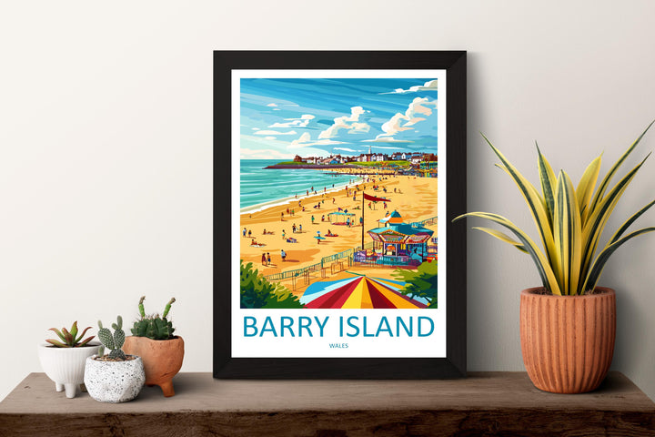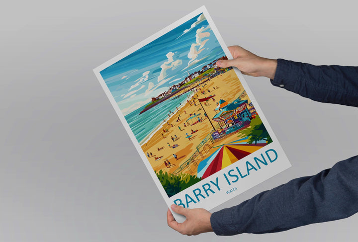 Barry Island Travel Poster Wales Wall Art Seaside Town Print Beachfront Illustration Coastal Decor Barry Gift Souvenir Scene