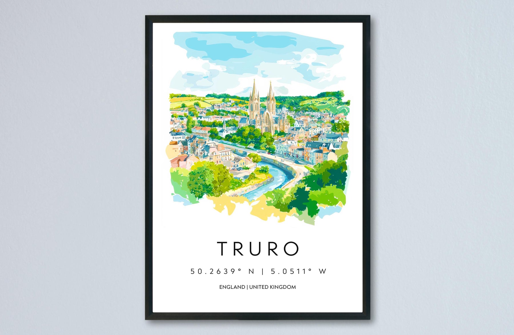 Truro Watercolor Poster Truro Cornwall Travel Print Wall Art Truro Home Decor Truro Gift Art Lovers UK Cathedral City