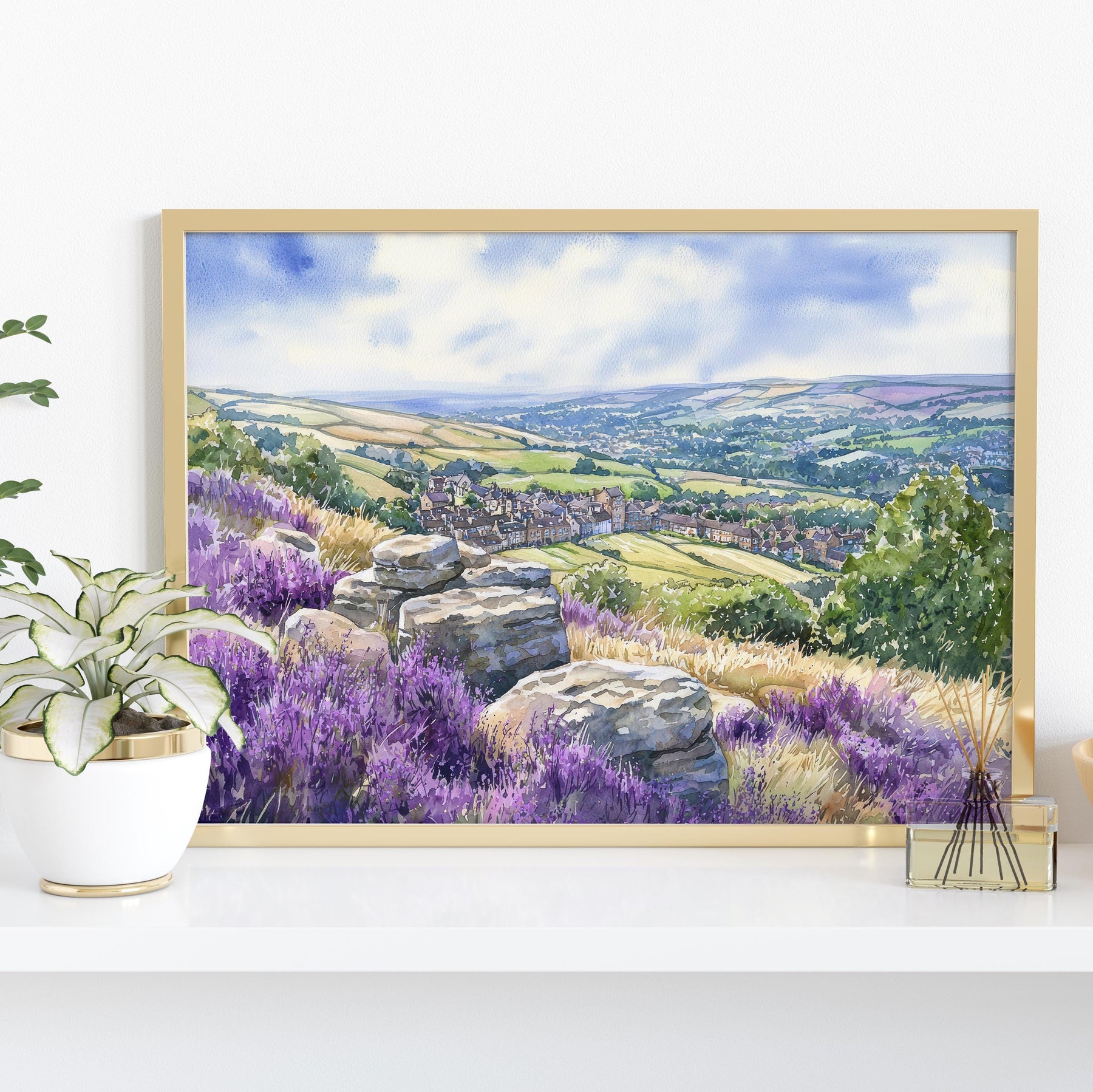 Ilkley England Watercolor Poster Ilkley Travel Print Countryside Town Painting Yorkshire Dales Wall Art UK Decor Souvenir