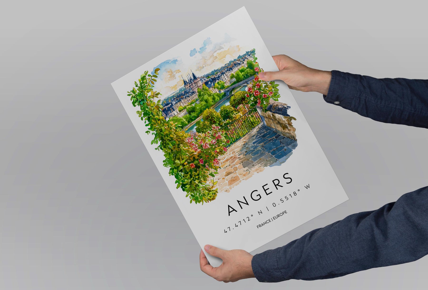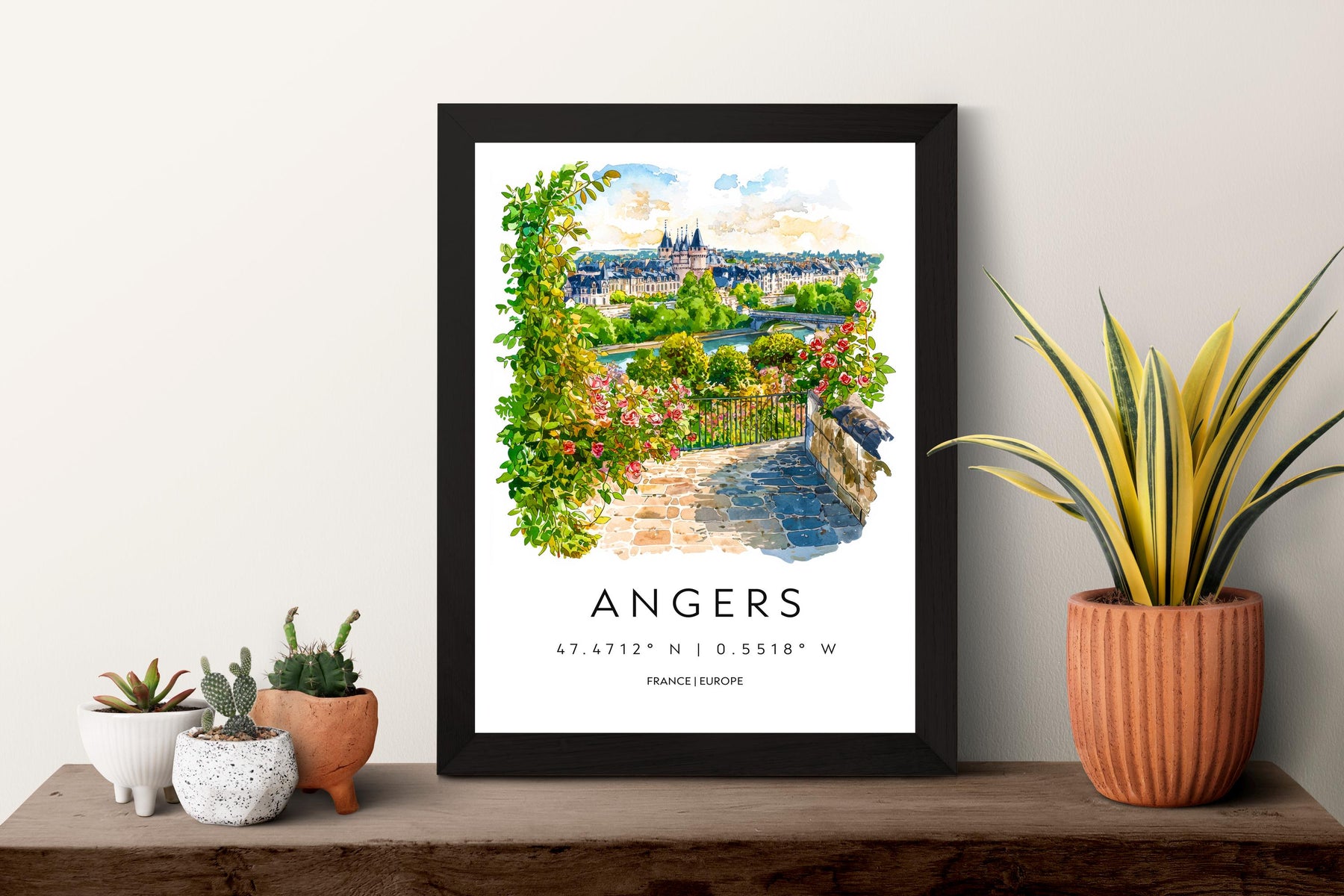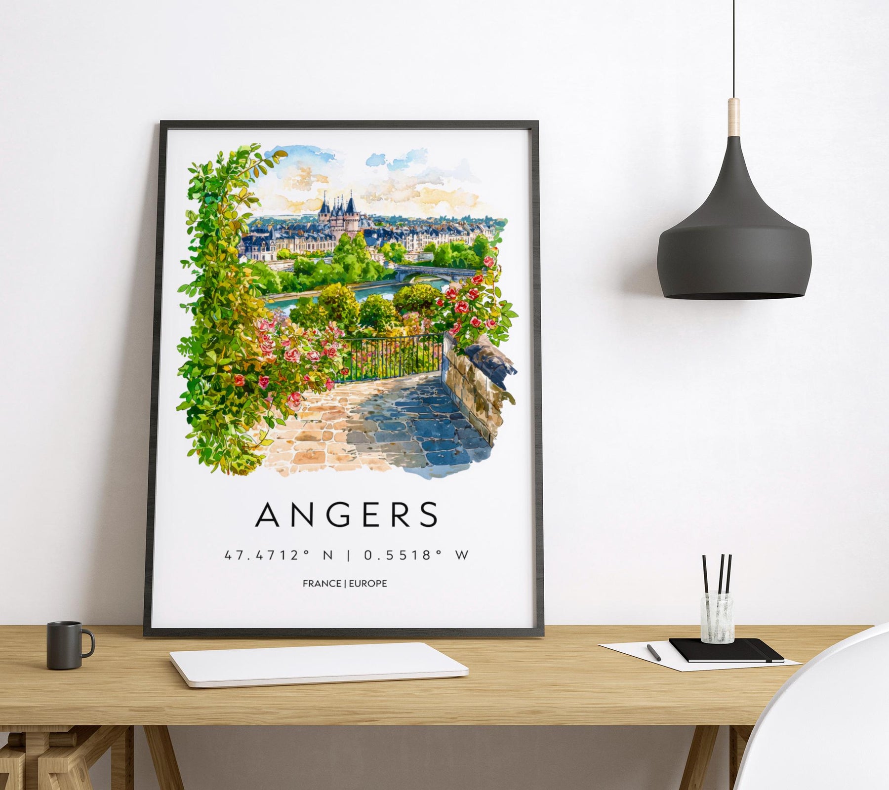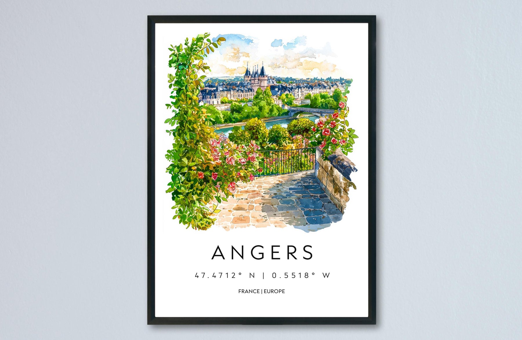 Angers Watercolor Poster Angers Travel Print France Wall Art Angers Decor Loire Valley Scene Chateau View Historic French City Print