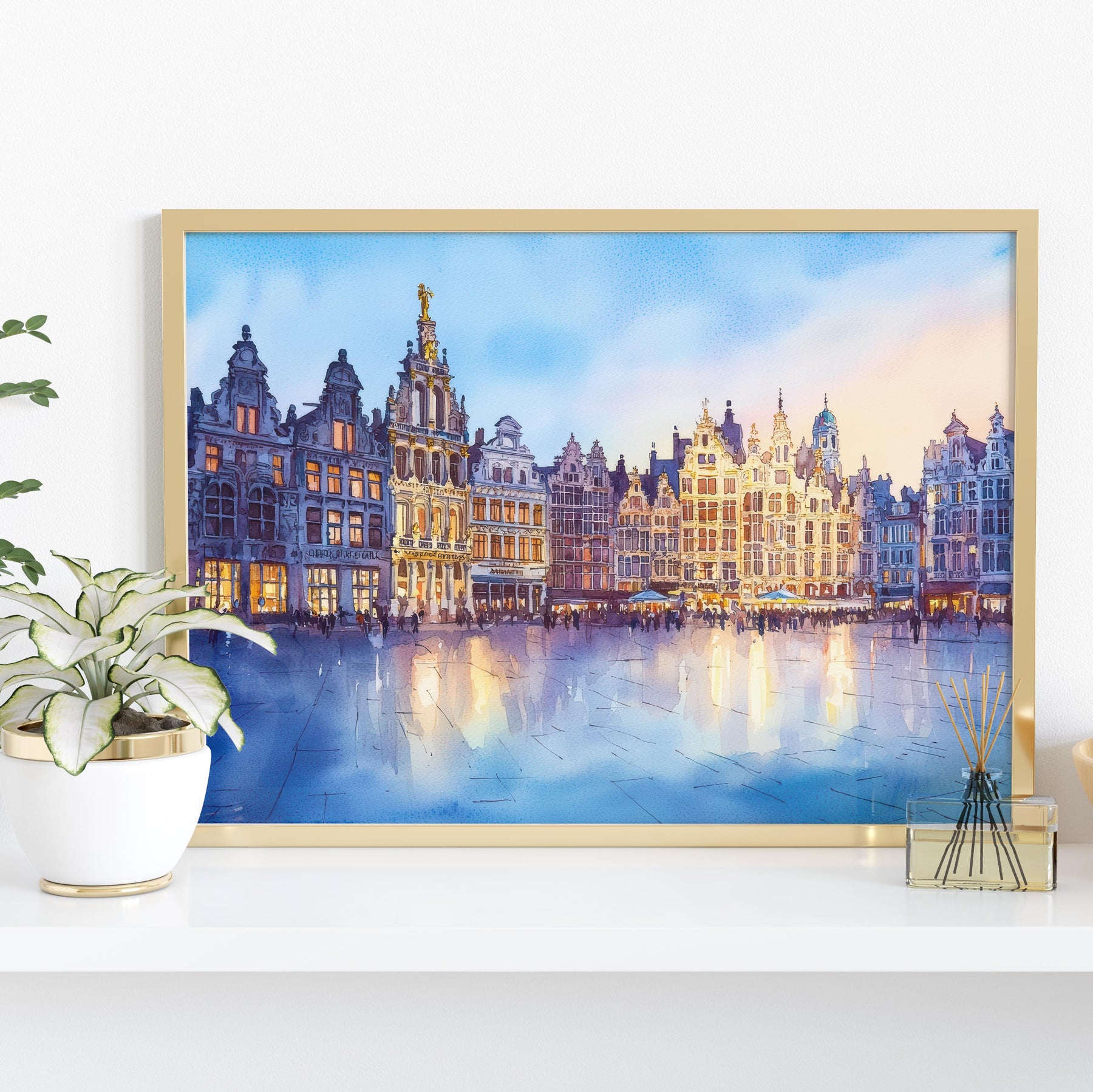 Antwerp Belgium Watercolor Poster Antwerp Travel Print Cityscape Painting Historic Town Wall Art Europe Decor Souvenir