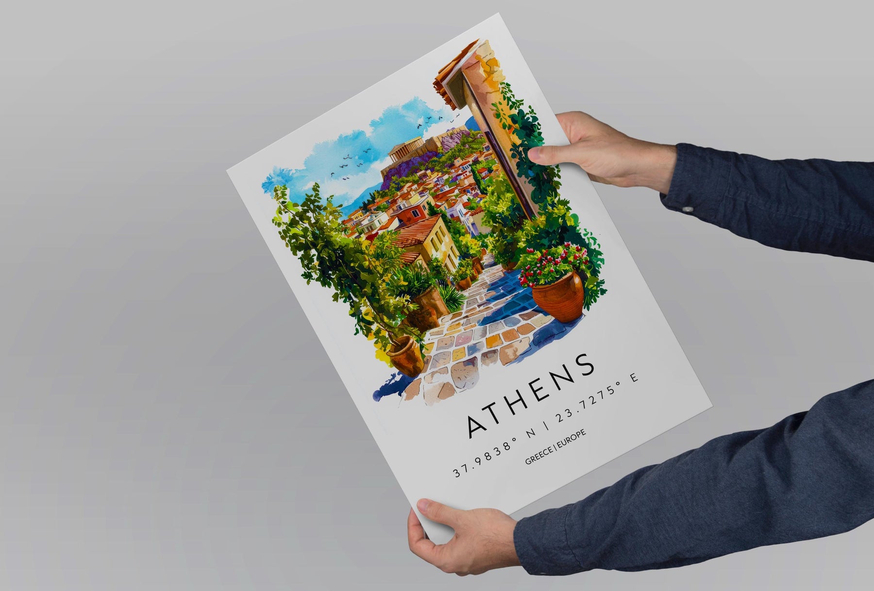 Athens Watercolor Poster Athens Travel Print Greece Wall Art Athens Cityscape Painting Athens Souvenir European Home Decor