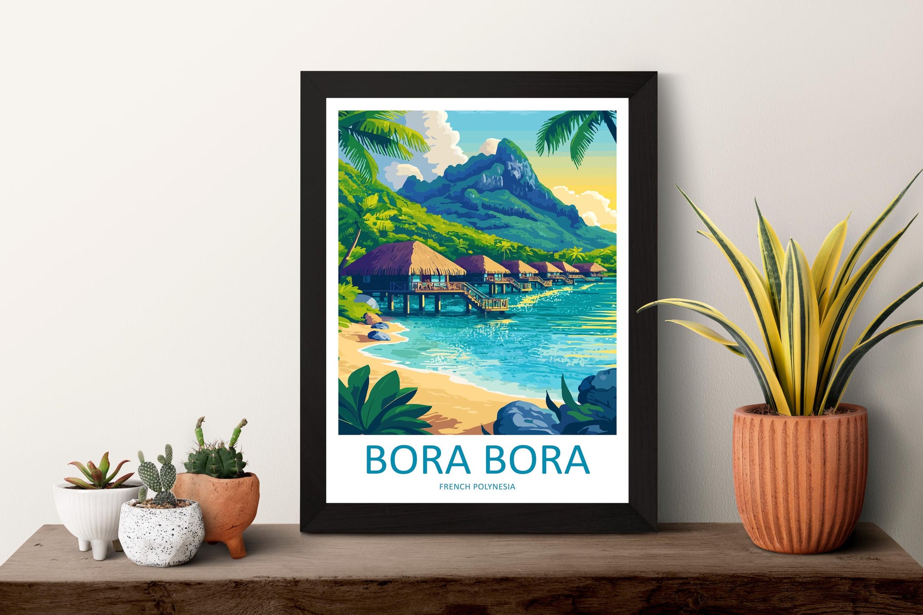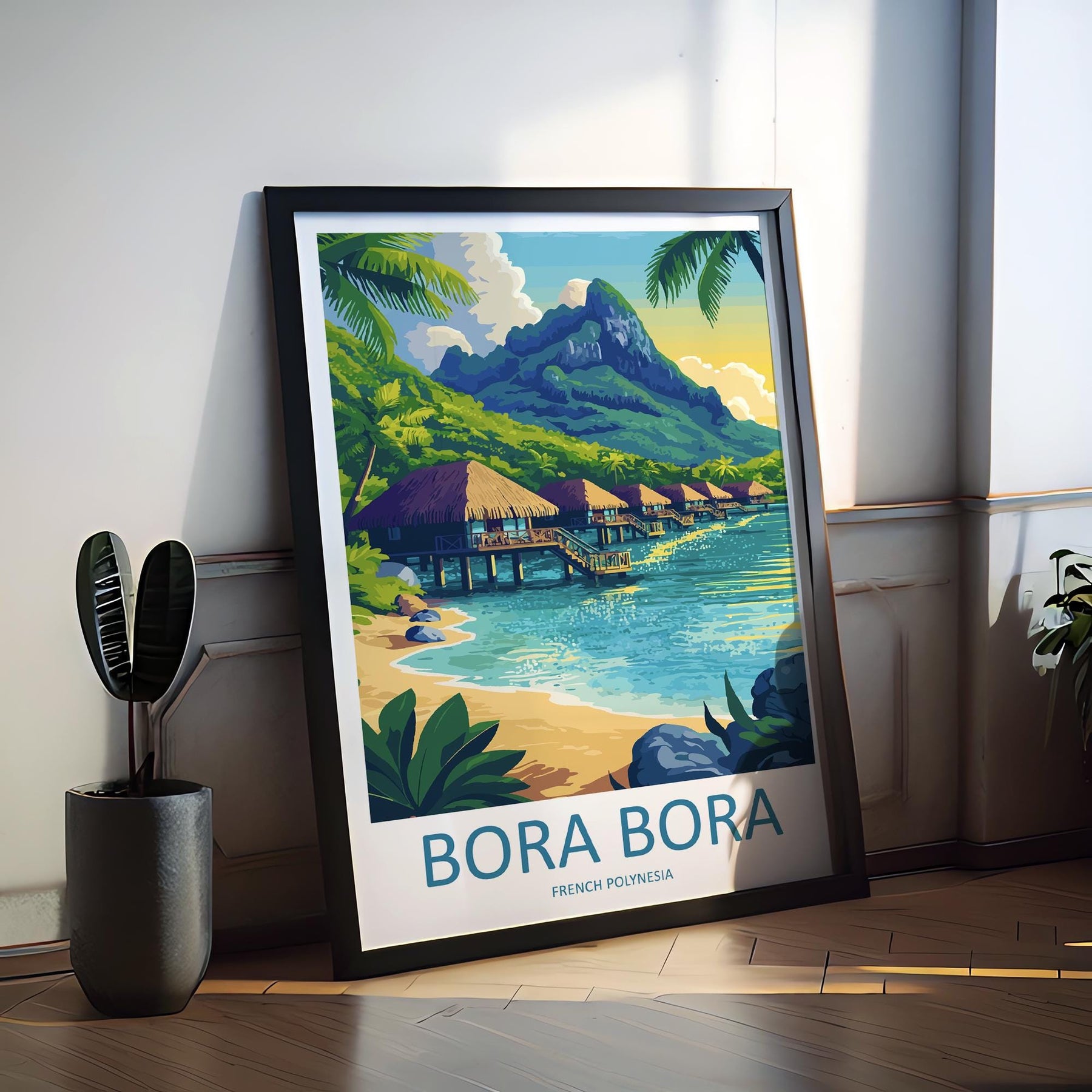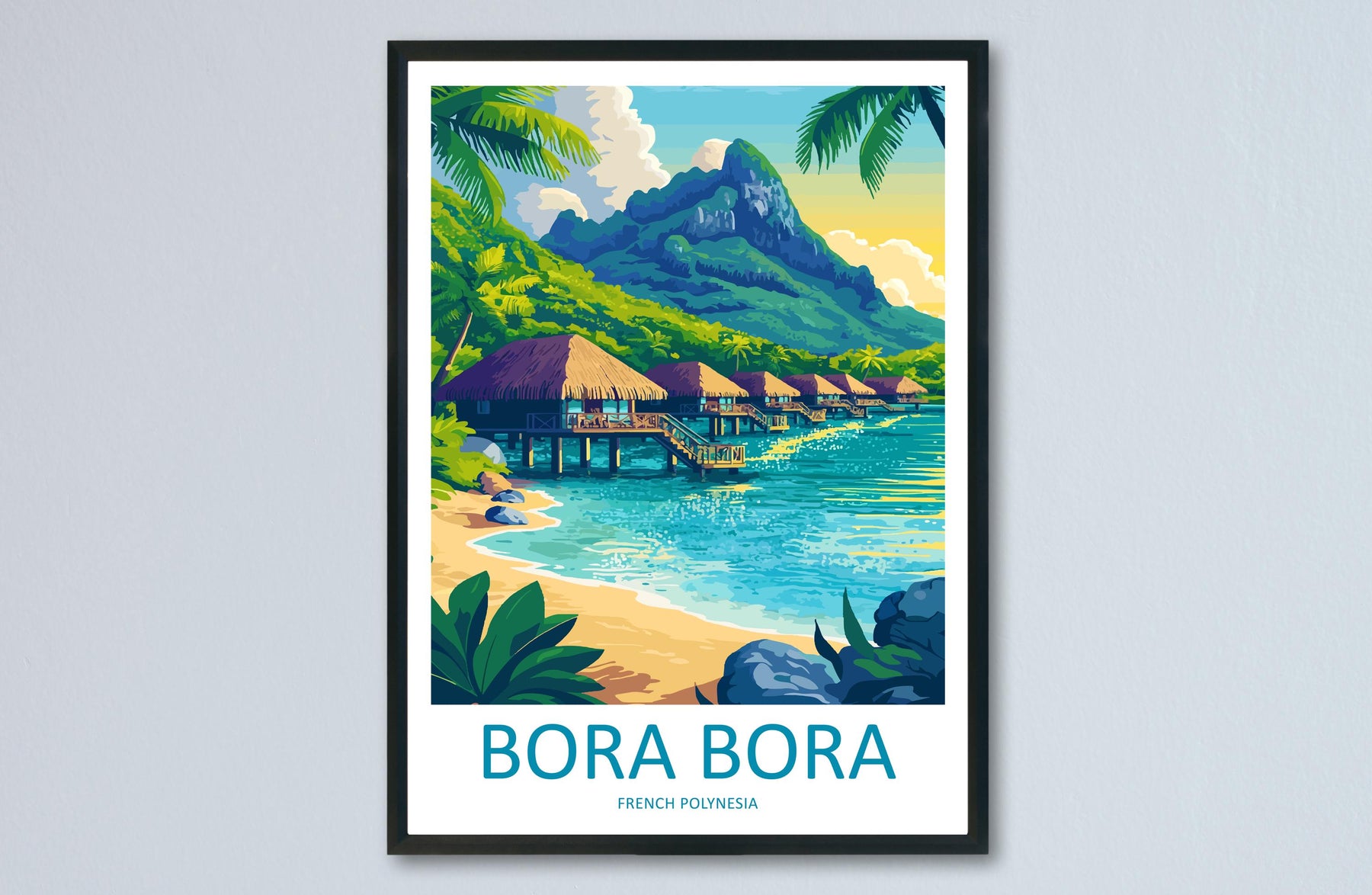 Bora Bora Travel Poster French Polynesia Wall Art Lagoon Beach Print Nature Decor Pacific Gift Souvenir Scene Oceania Tropical Art
