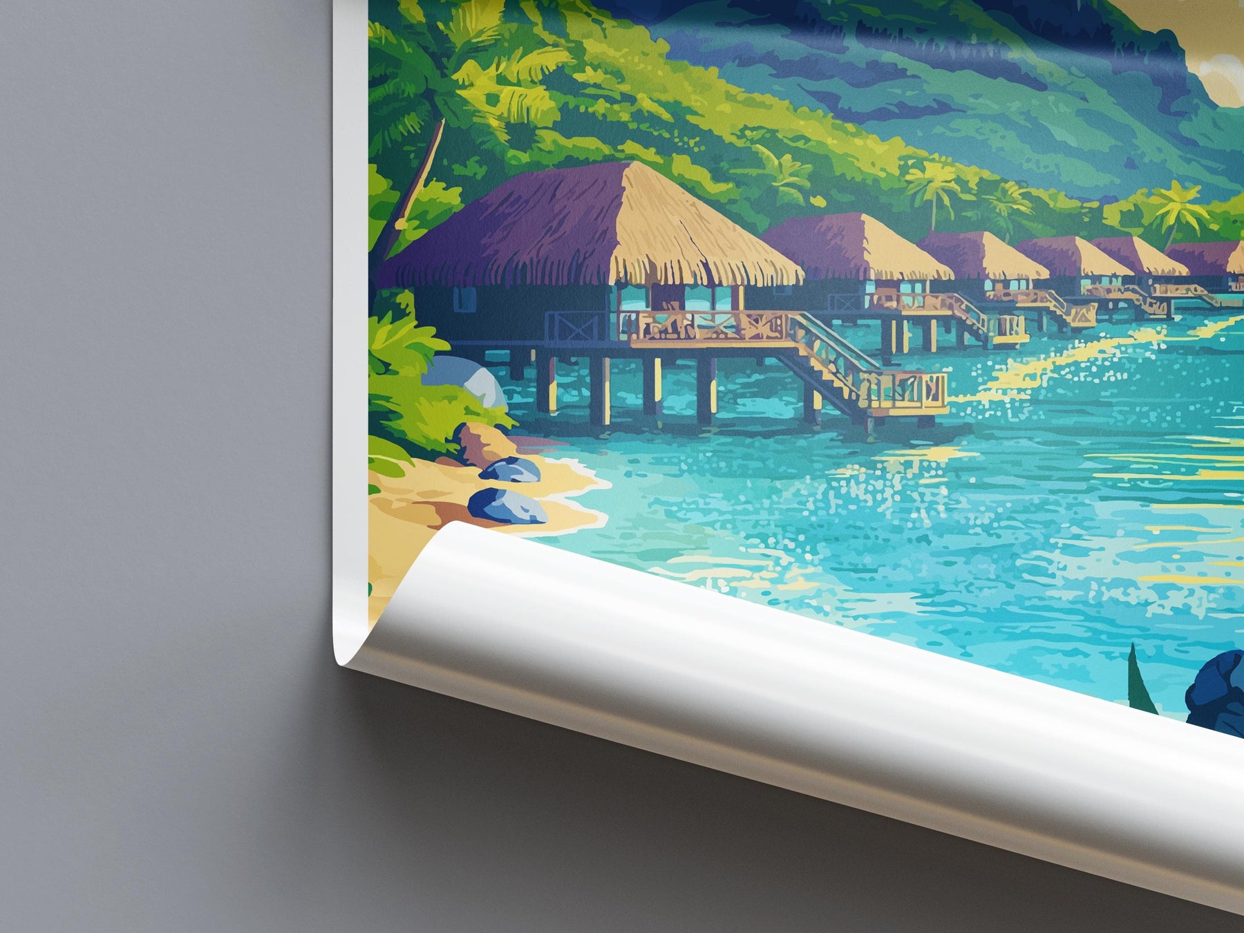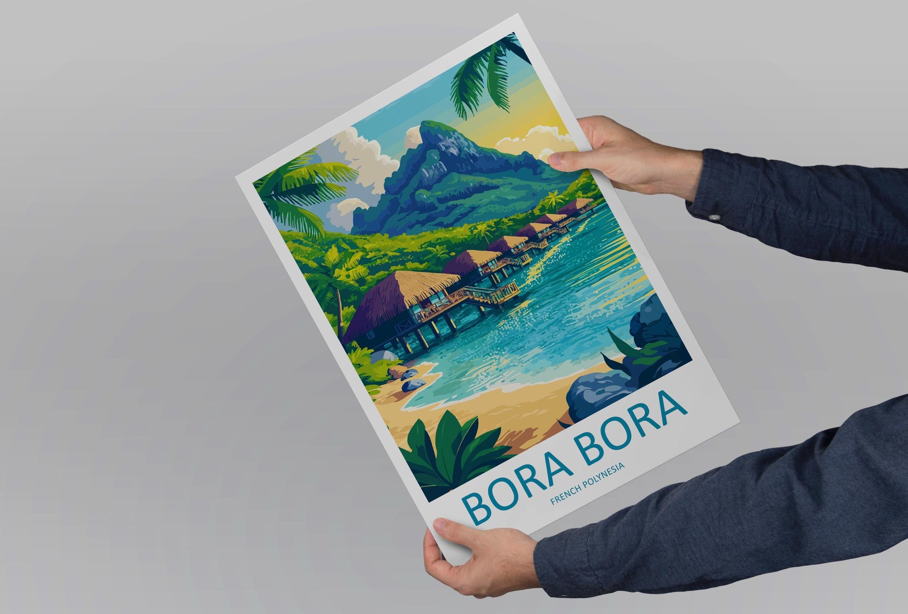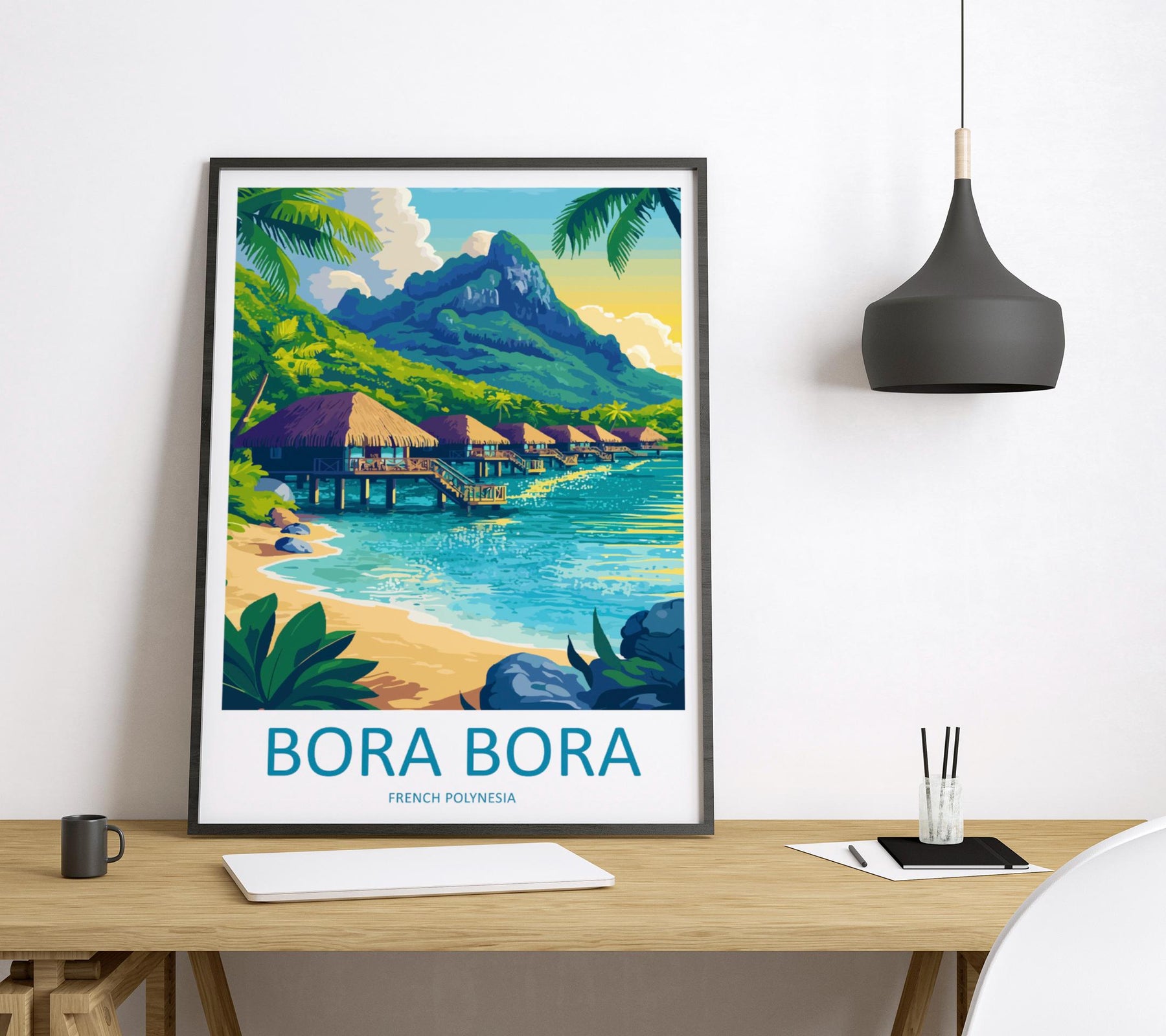 Bora Bora Travel Poster French Polynesia Wall Art Lagoon Beach Print Nature Decor Pacific Gift Souvenir Scene Oceania Tropical Art