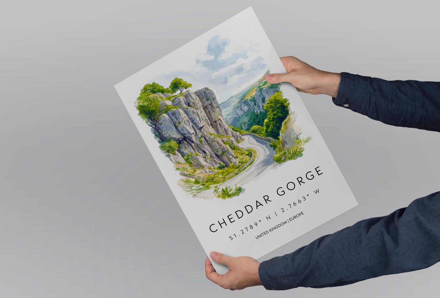 Cheddar Gorge Watercolor Poster Wall Art Cheddar Gorge Decor Home Décor Cheddar Gorge Gift UK Art Lover Gift, Travel Souvenir Print