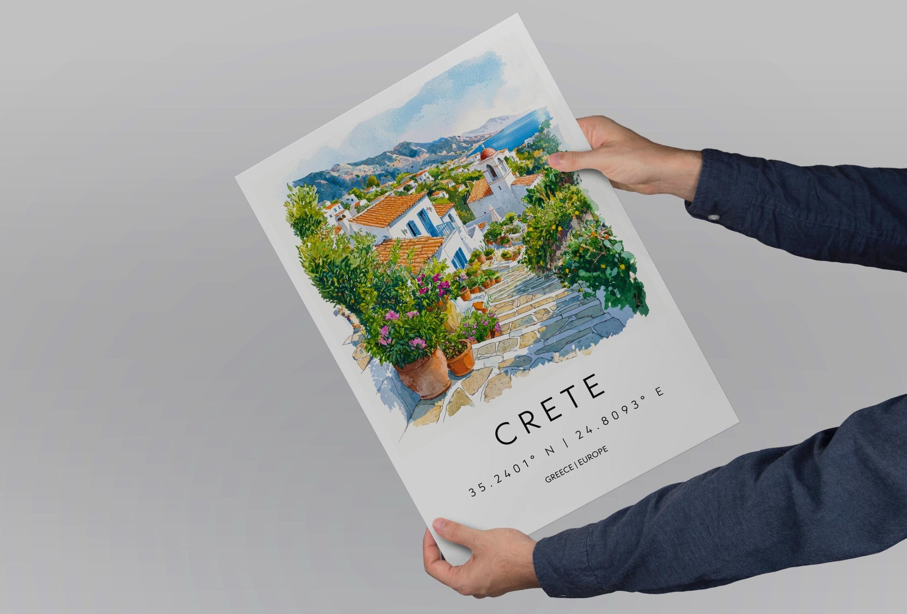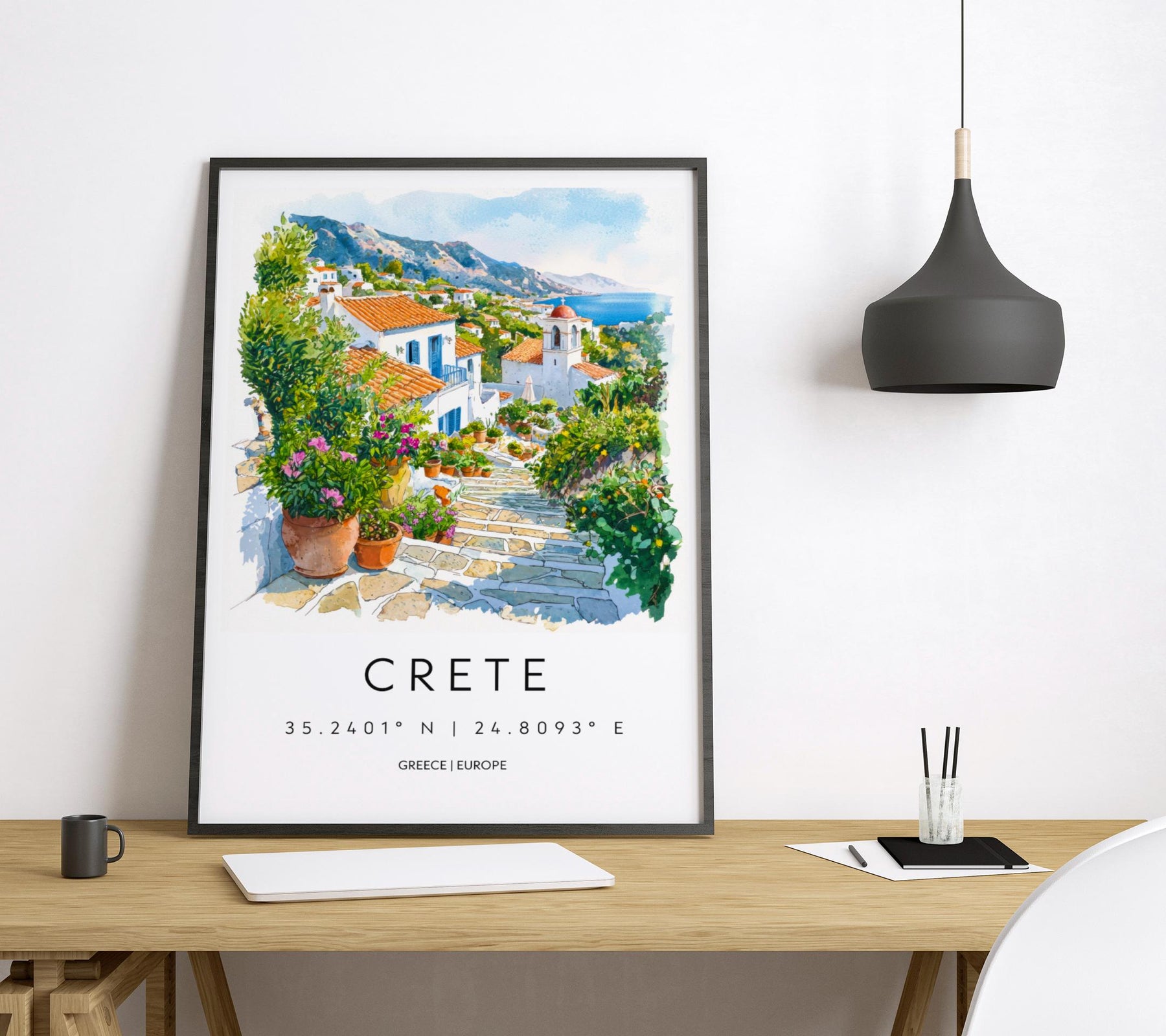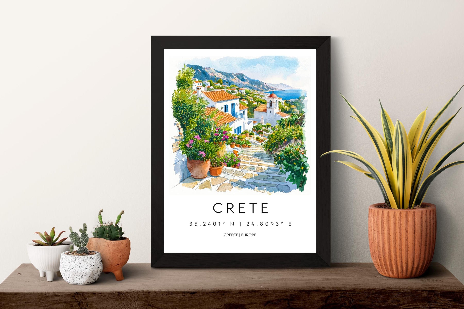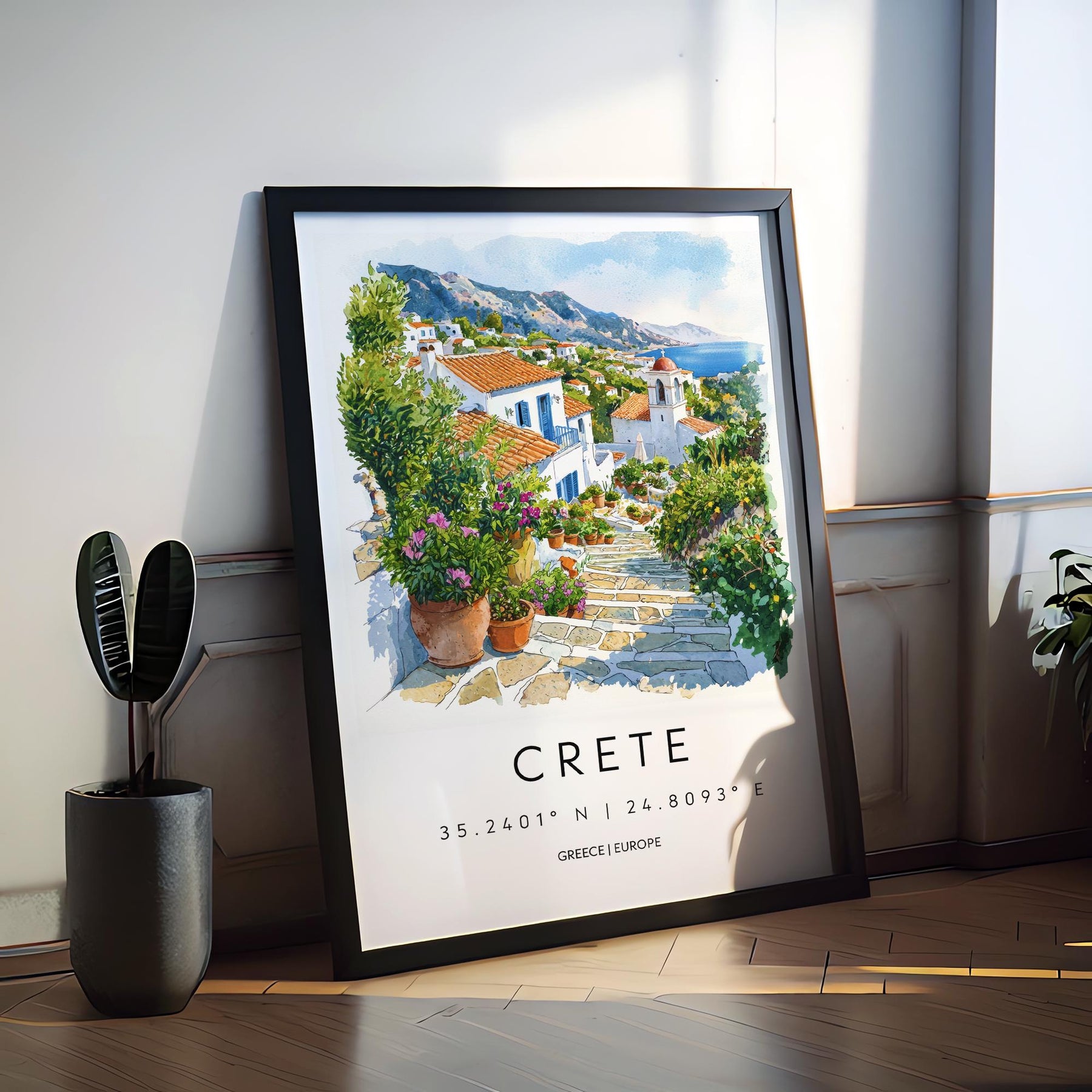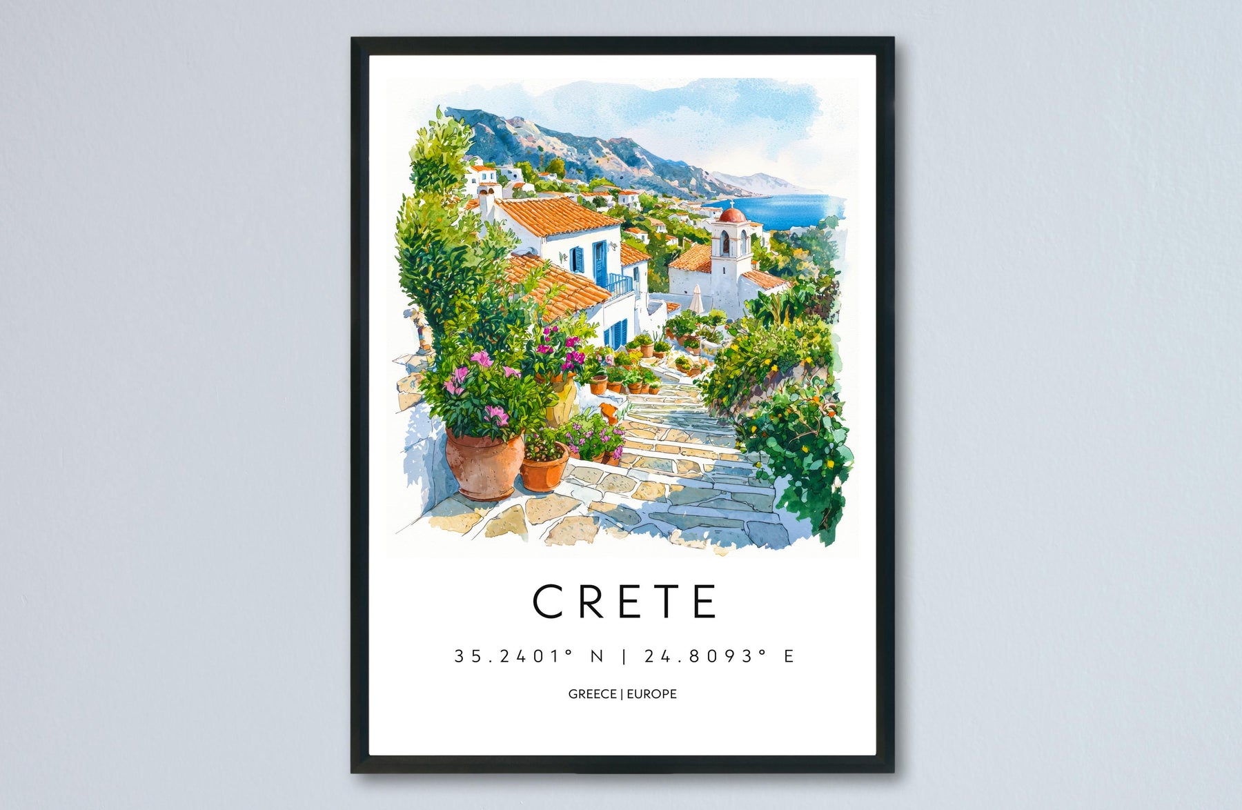 Crete Watercolor Poster Crete Travel Print Crete Wall Art Crete Landscape Painting Crete Souvenir Greek Island Decor