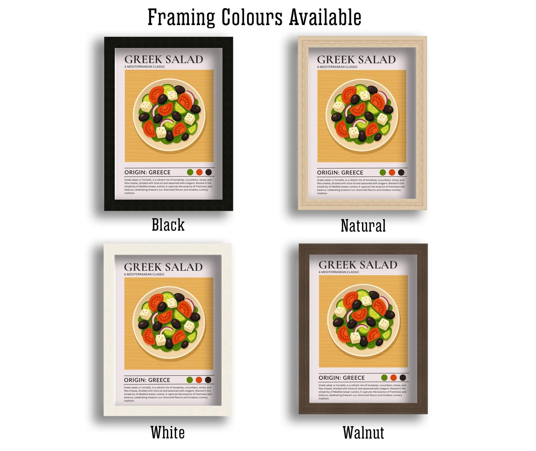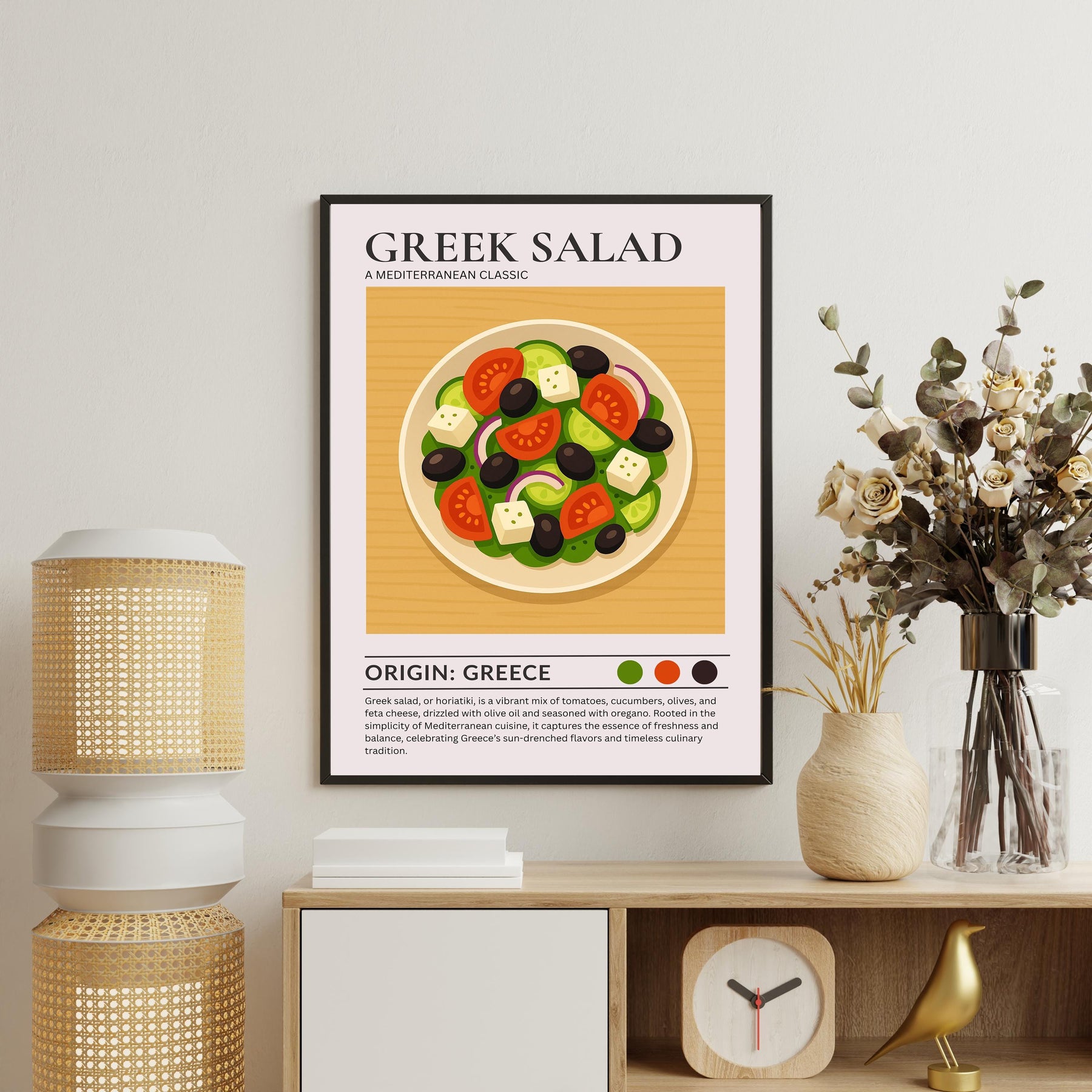 Greek Salad Kitchen Print Mediterranean Food Poster Vintage Culinary Art Kitchen Wall Art Greek Cuisine Decor Dining Room Artwork