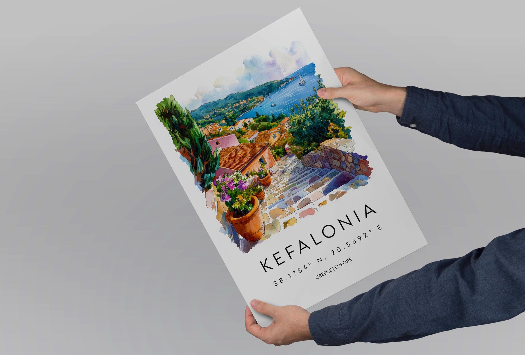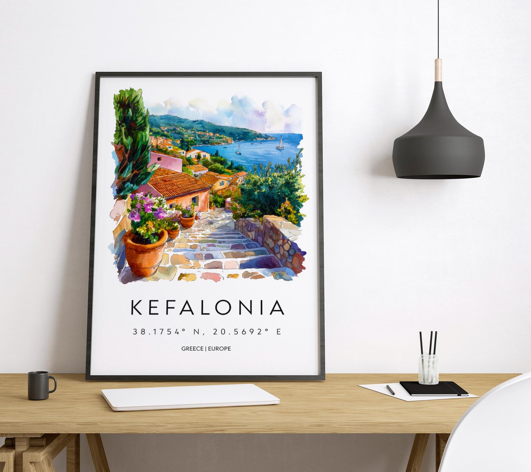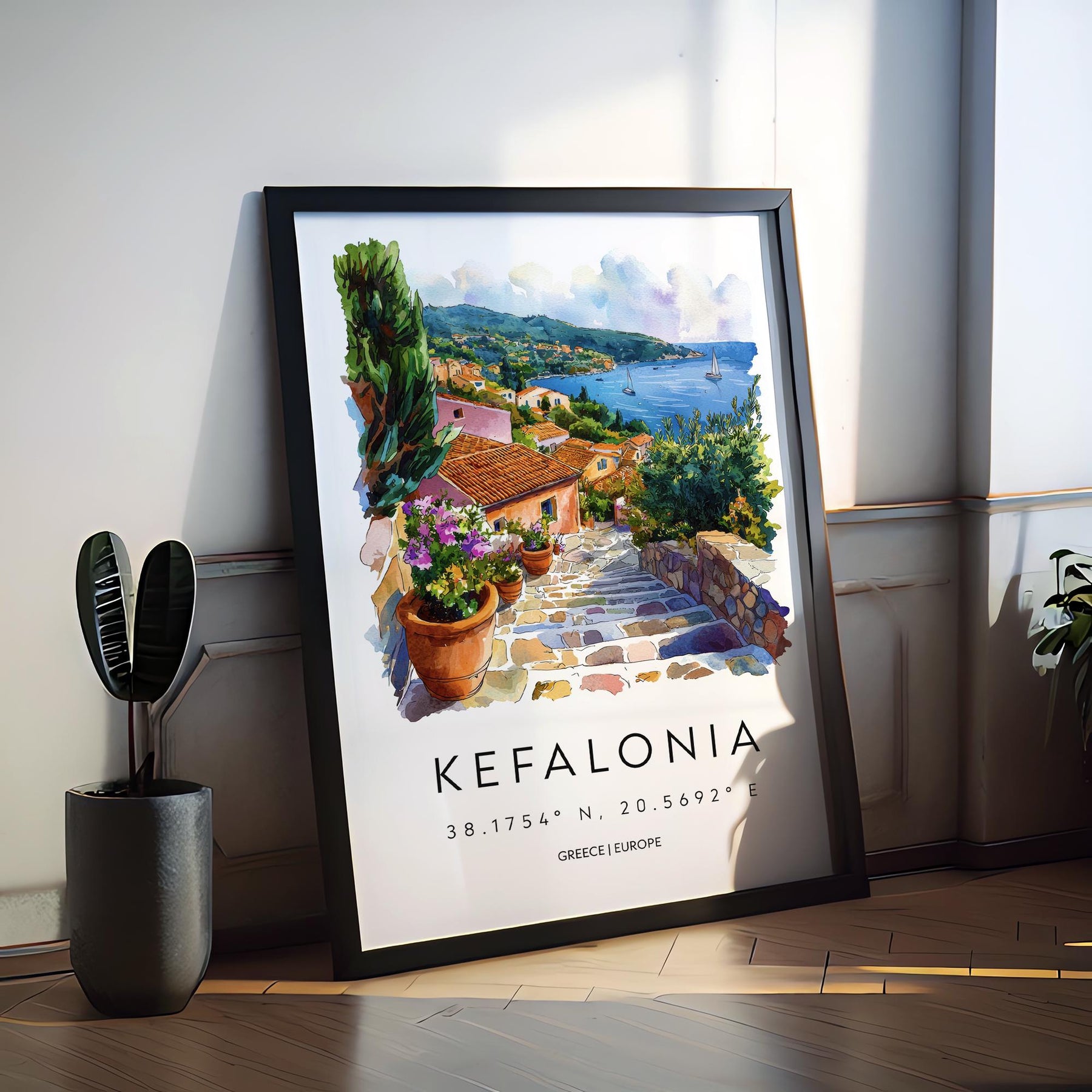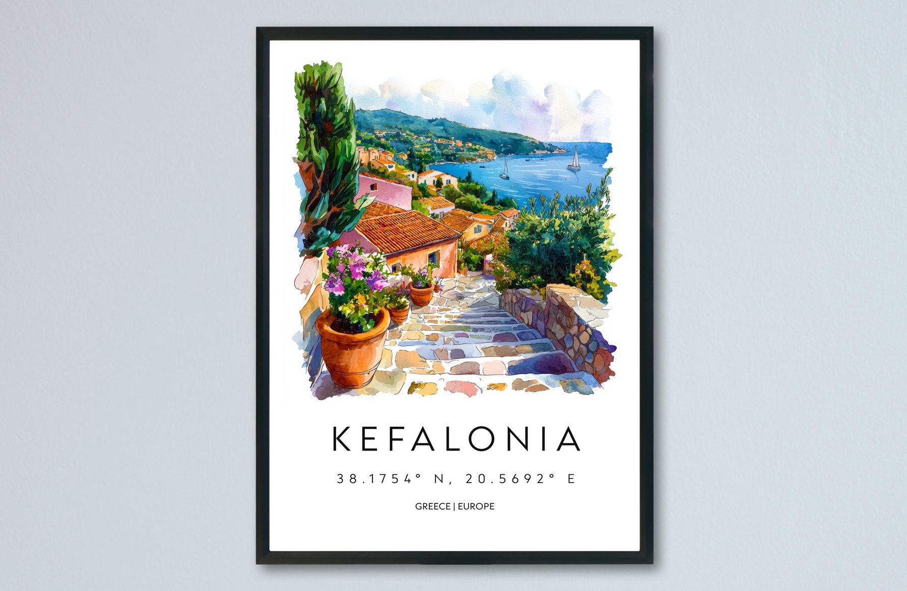 Kefalonia Watercolor Poster Kefalonia Travel Print Kefalonia Wall Art Kefalonia Painting Greece Island Souvenir Decor