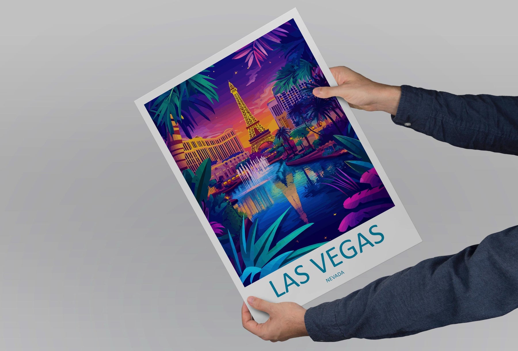 Las Vegas Travel Poster Nevada Wall Art Cityscape Print Strip View Illustration Neon Decor Las Vegas Gift Souvenir Scene
