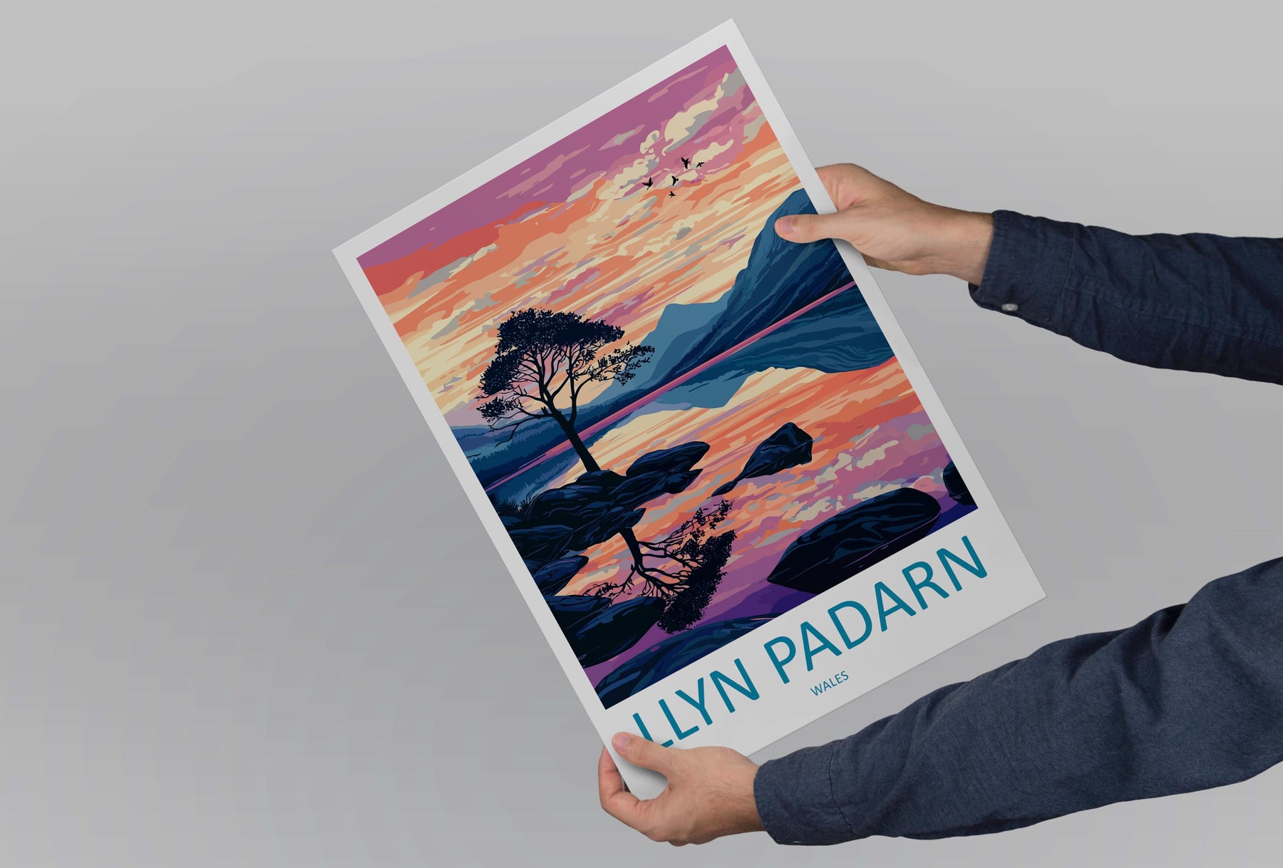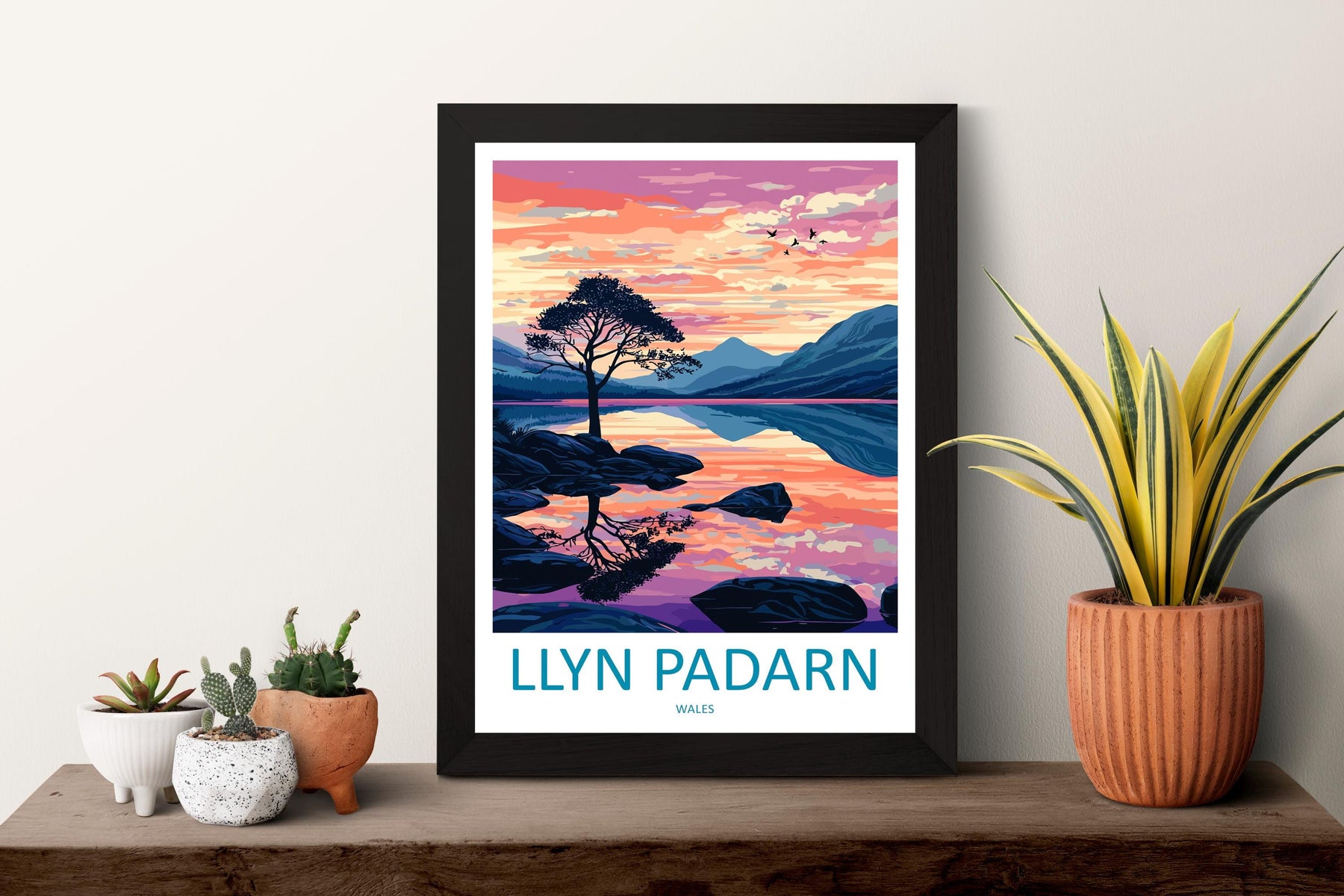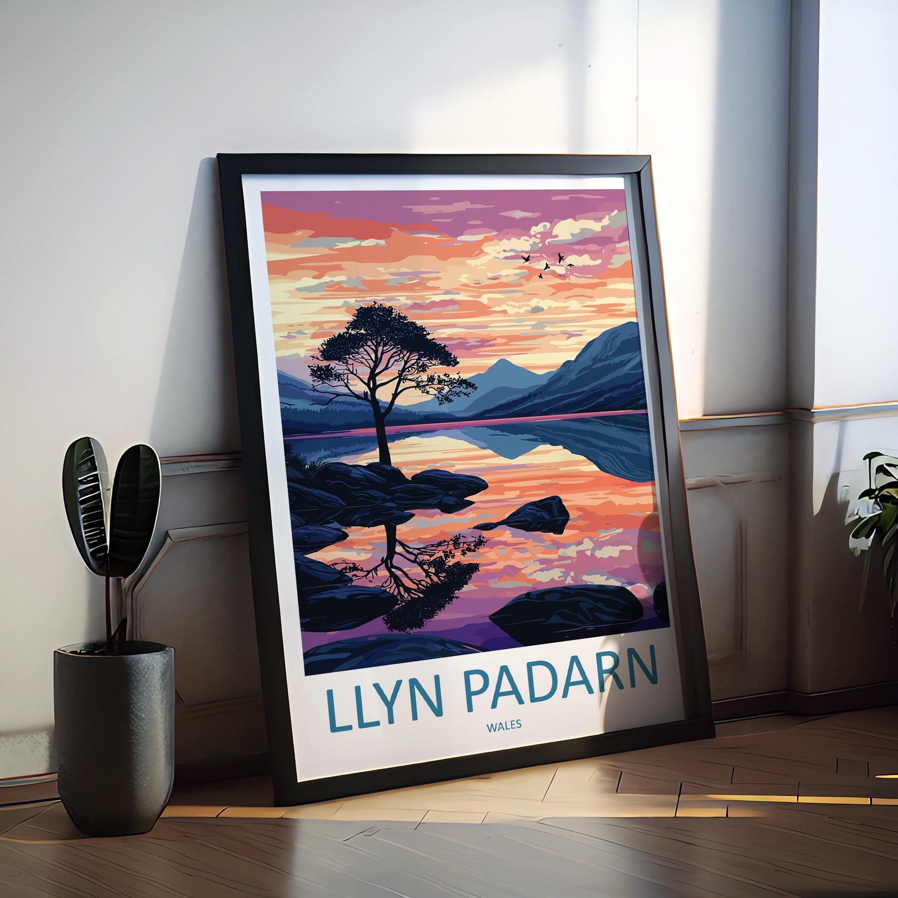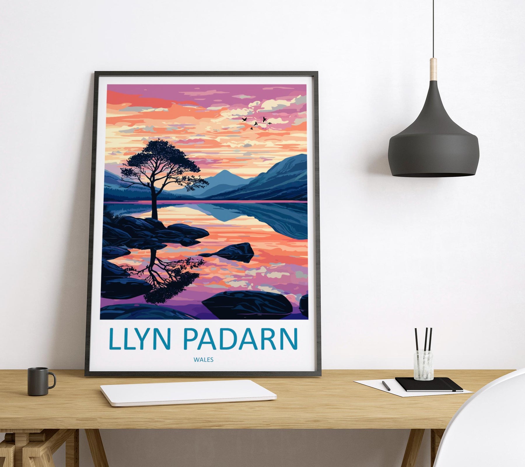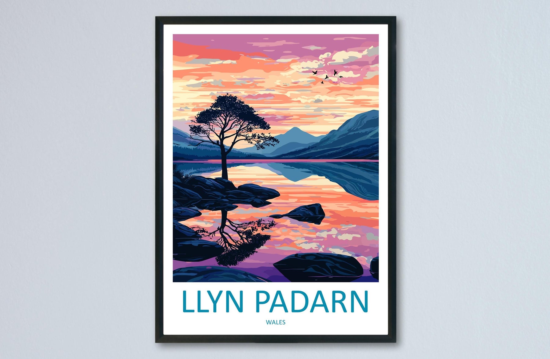 Llyn Padarn Travel Poster Wales Wall Art Snowdonia Lake Print Mountain Landscape Illustration Nature Decor Llyn Padarn Gift Souvenir