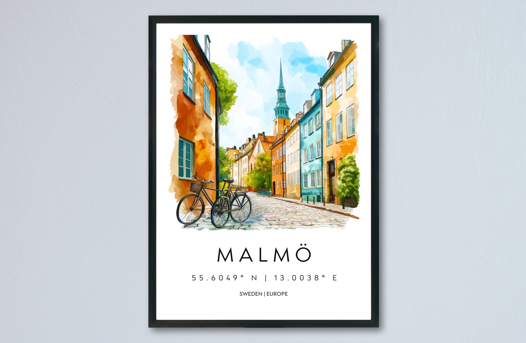 Malmö Watercolor Poster Wall Art Malmö Wall Decor Home Décor Malmö Gift Sweden Art Lover Gift, Travel Souvenir Print
