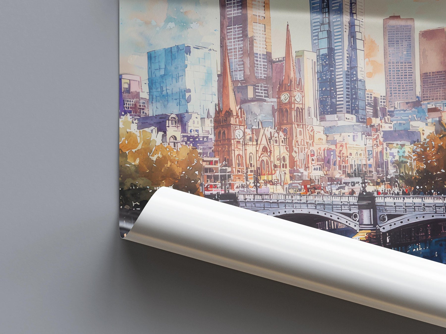 Melbourne Watercolor Poster Melbourne Travel Print Melbourne Wall Art Melbourne Cityscape Painting Australia Souvenir Decor