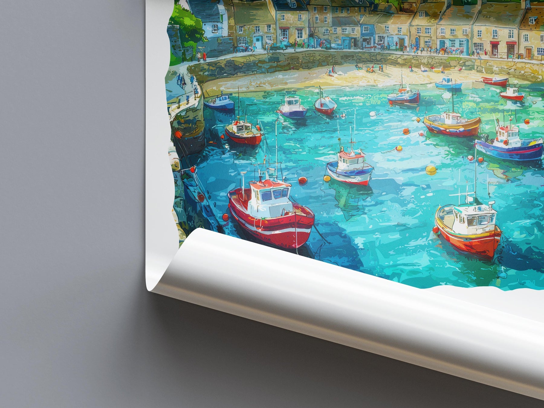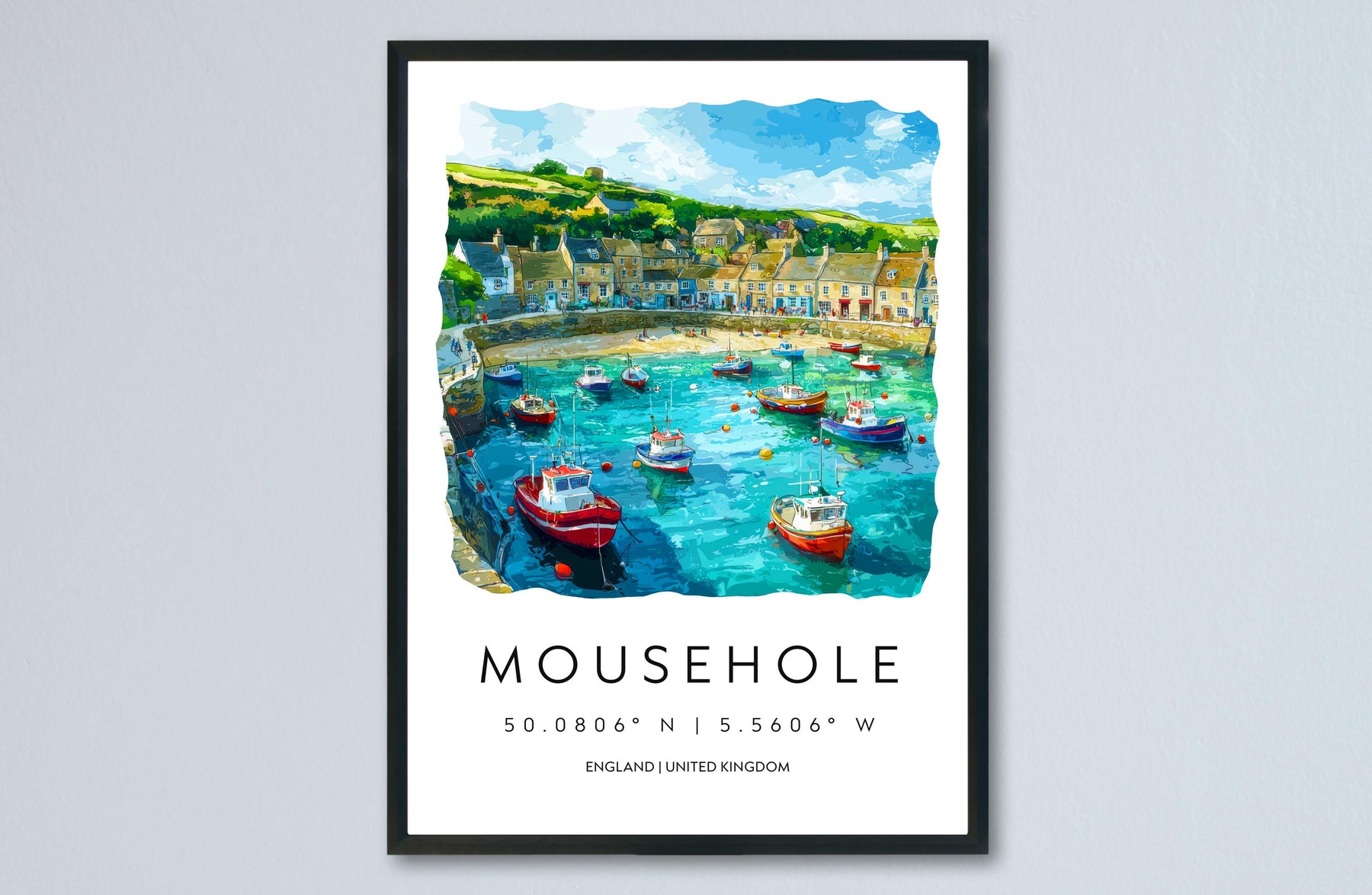 Mousehole Watercolor Poster Mousehole Cornwall Travel Print Wall Art Mousehole Home Decor Mousehole Gift Art Lovers UK Fishing Village