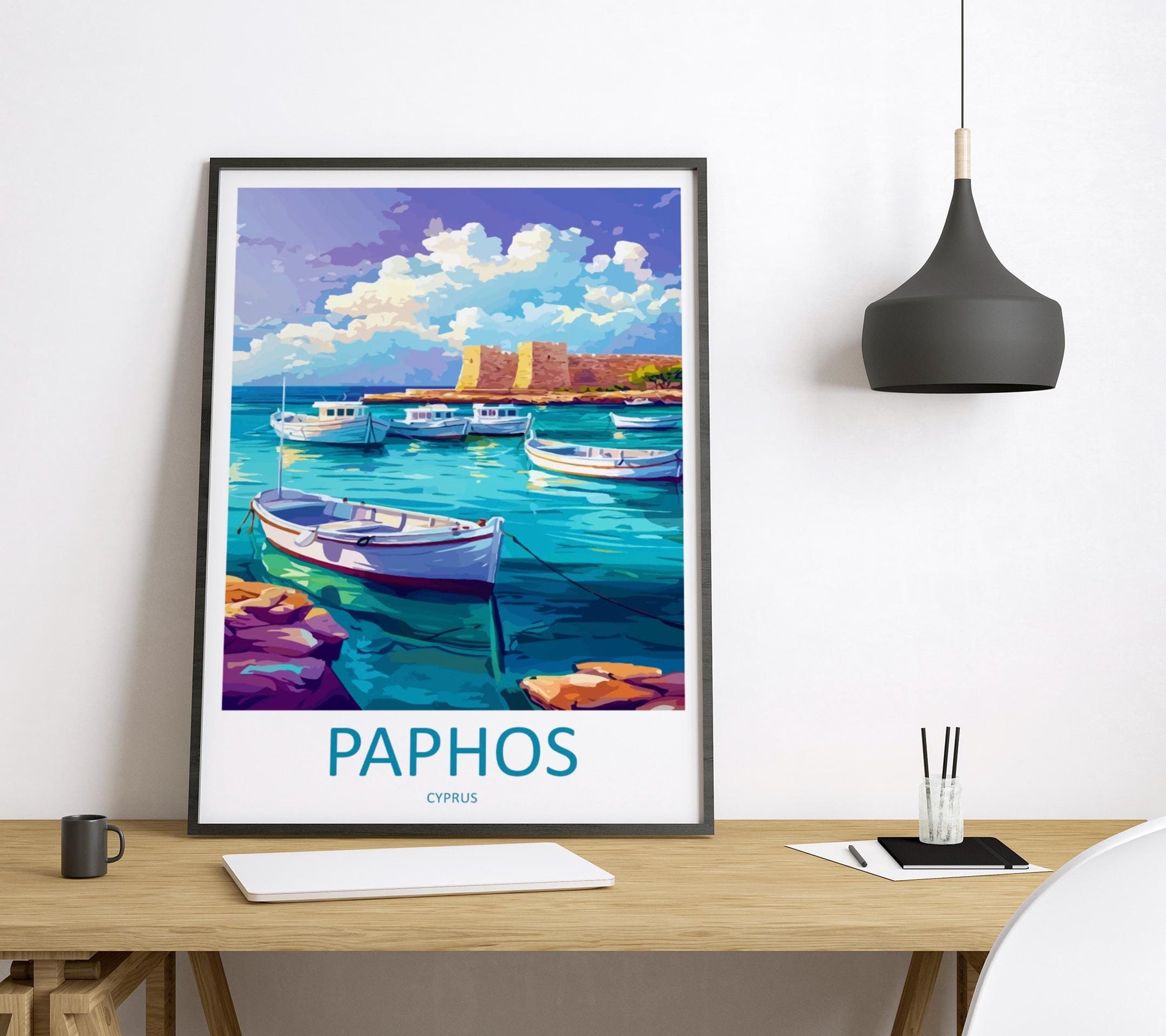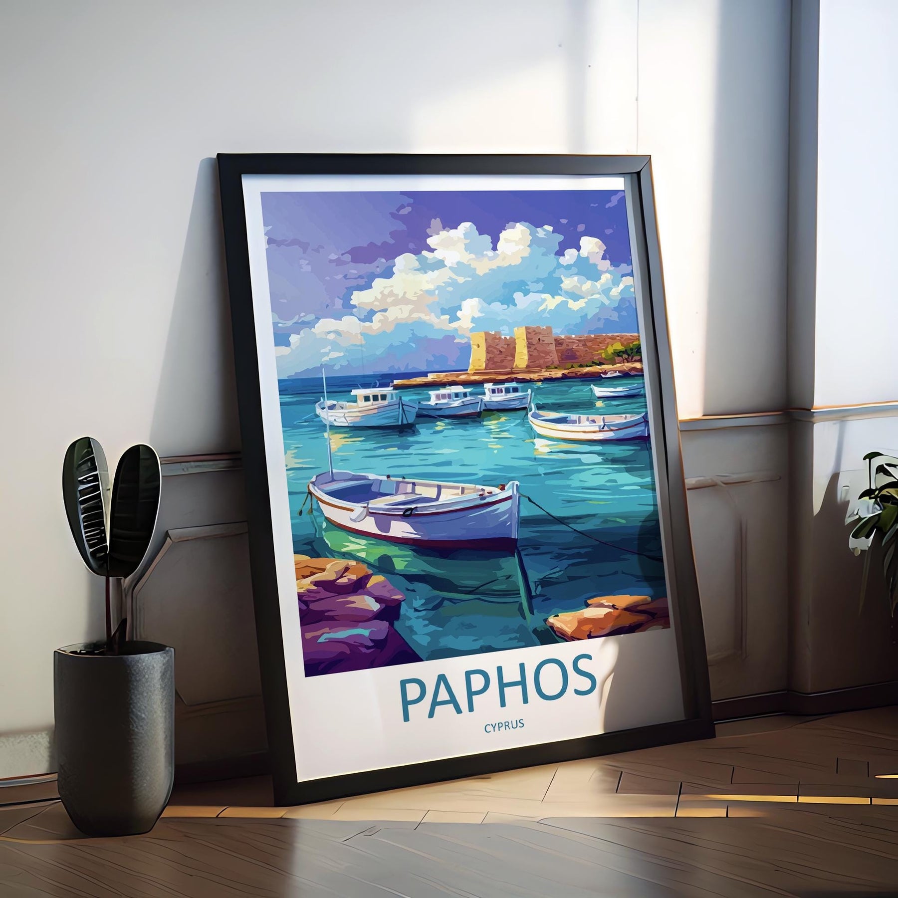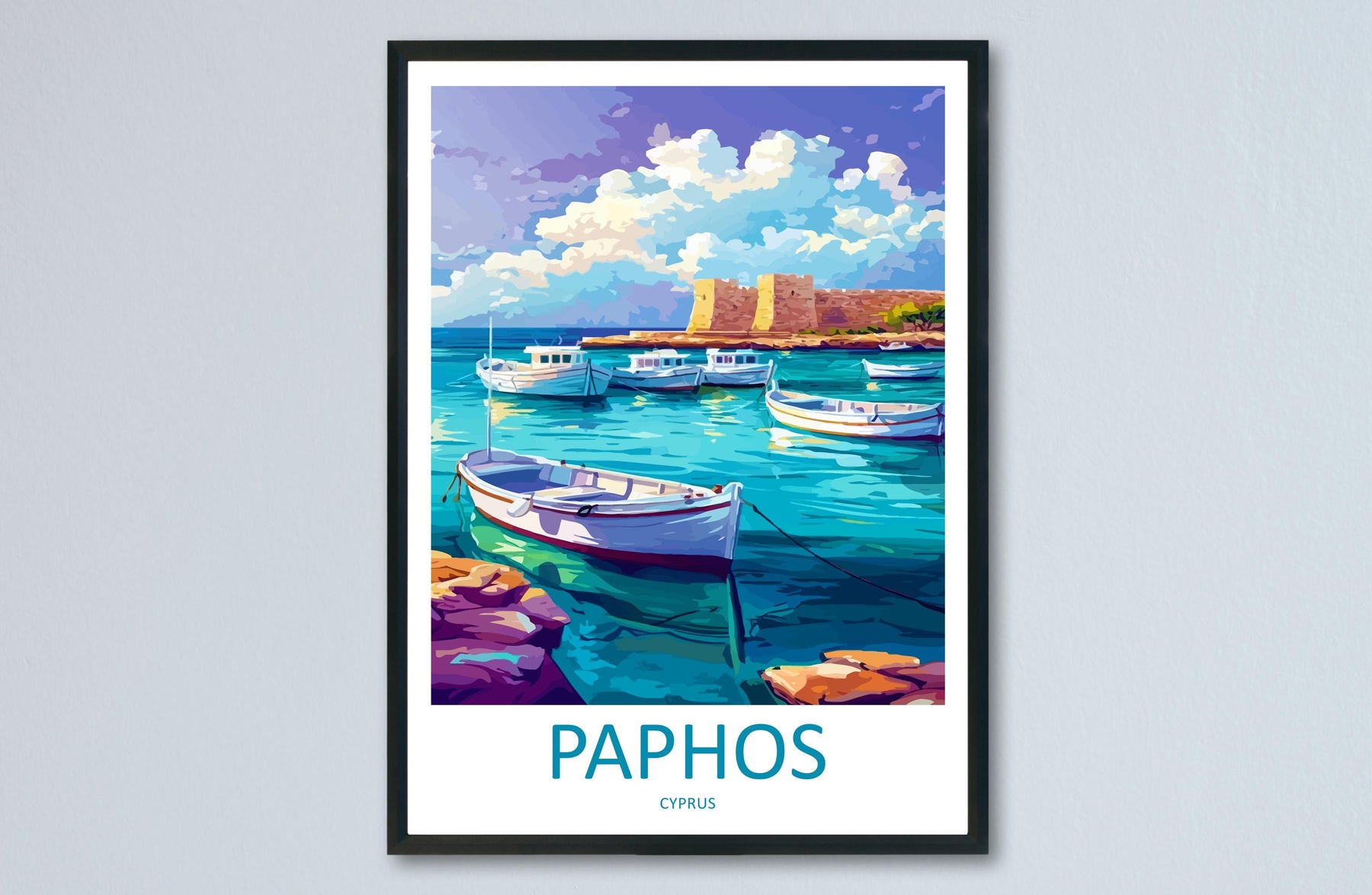 Paphos Cartoon Travel Poster Cyprus Wall Art Coastal Print Mediterranean Illustration Historic Decor Paphos Souvenir Gift