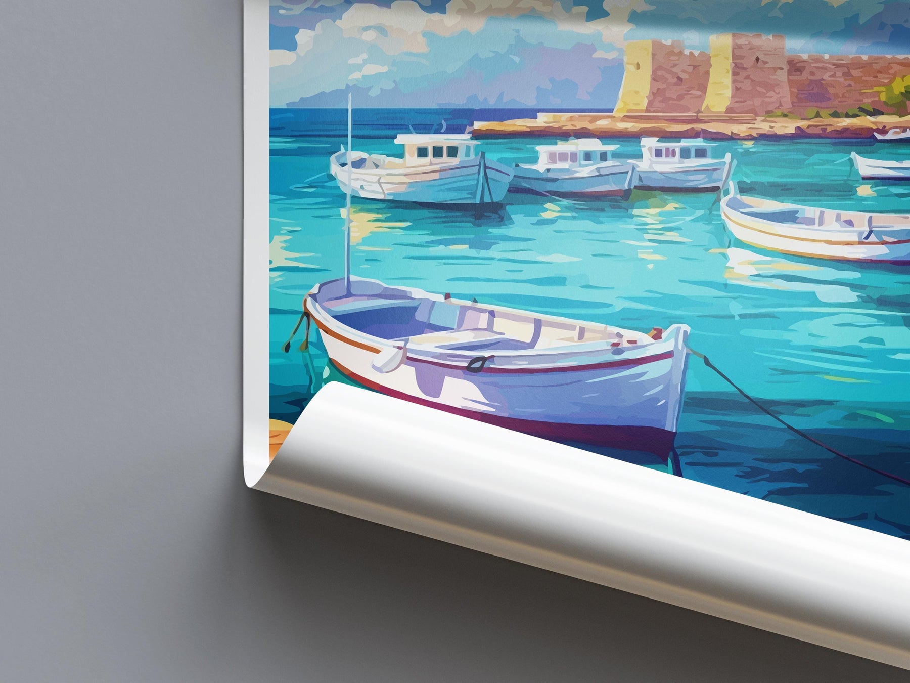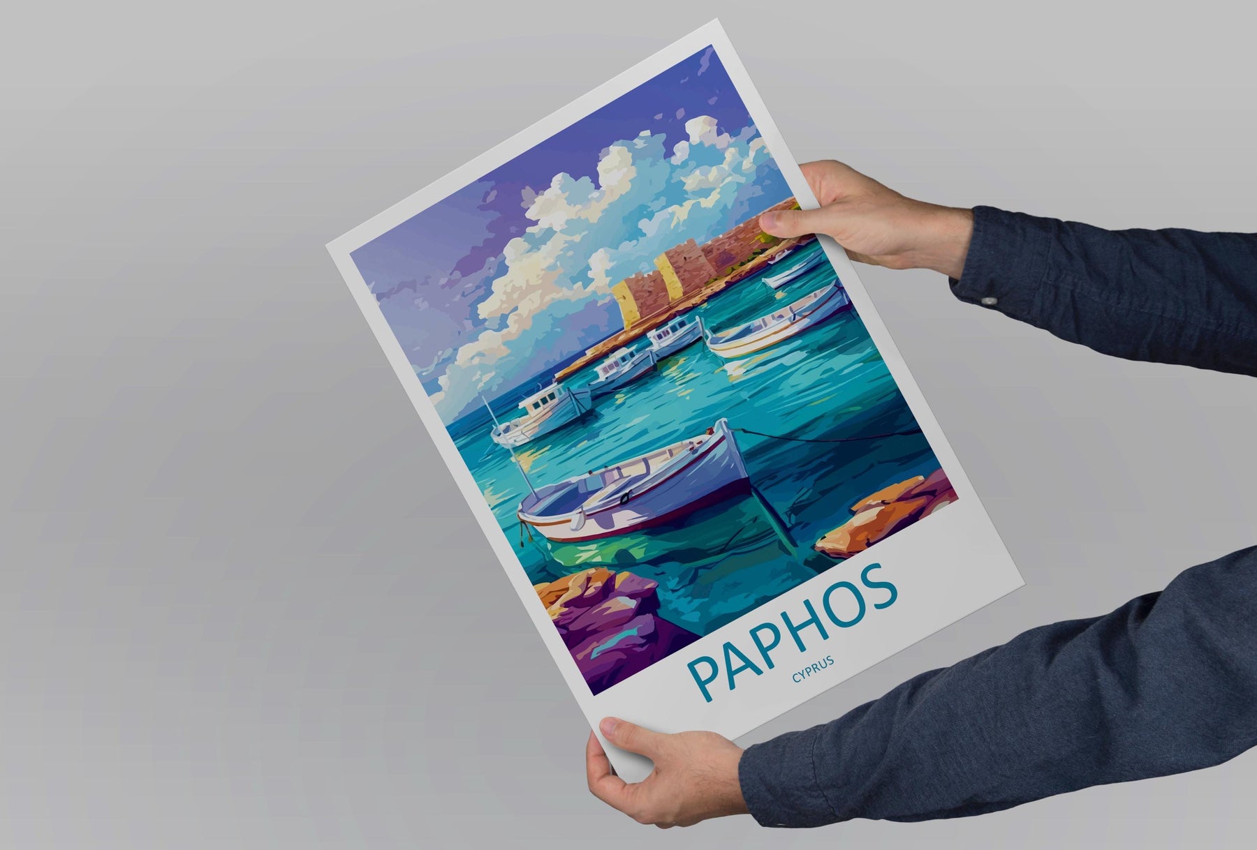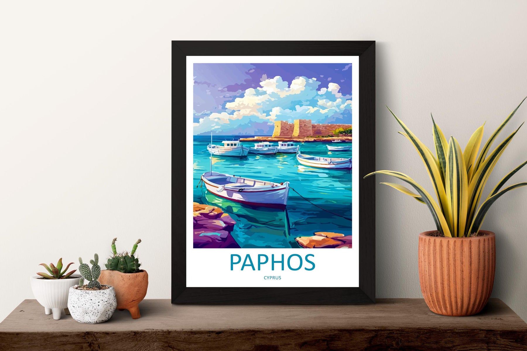 Paphos Cartoon Travel Poster Cyprus Wall Art Coastal Print Mediterranean Illustration Historic Decor Paphos Souvenir Gift