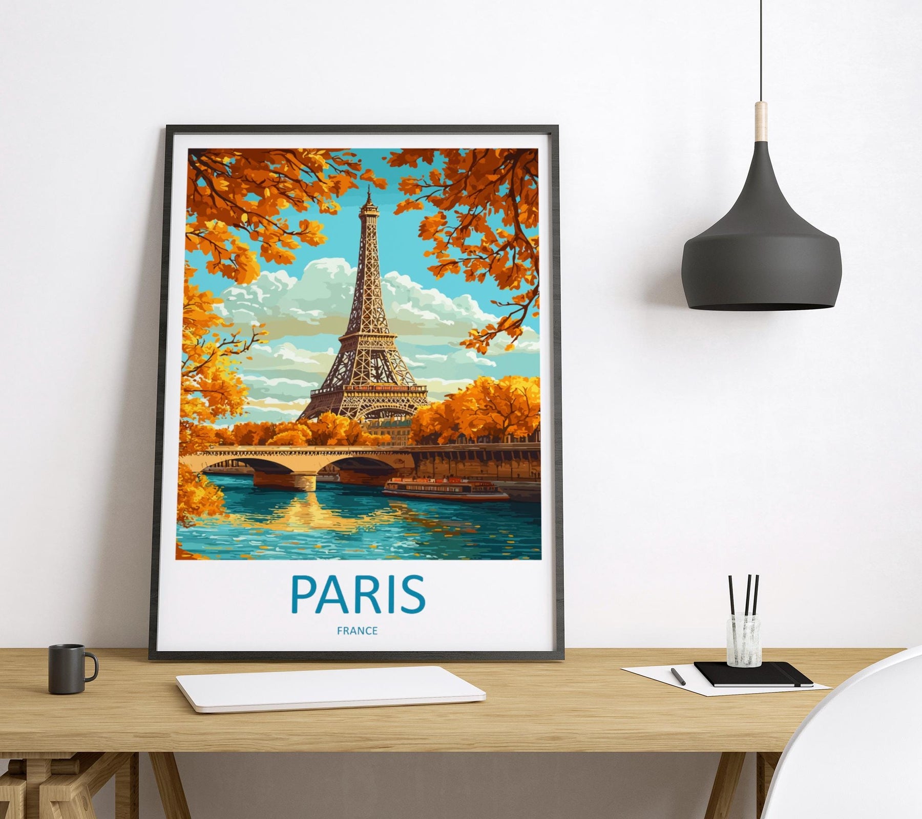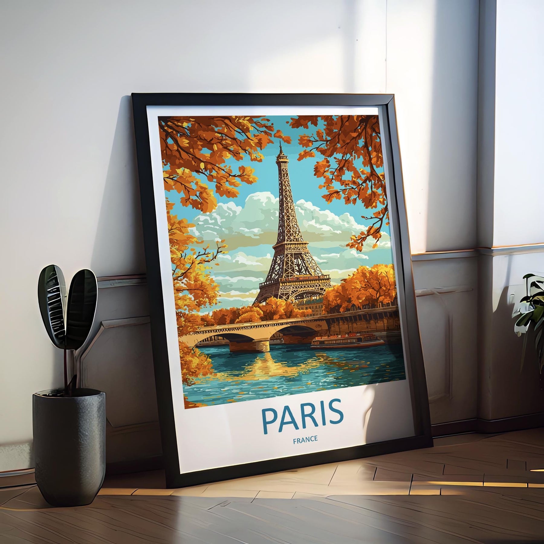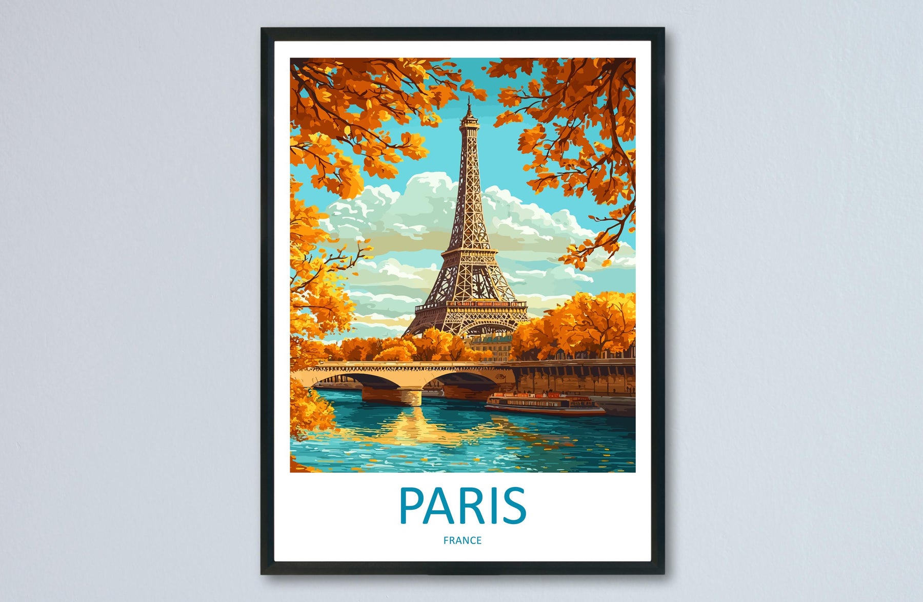 Paris Travel Poster France Wall Art Cityscape Print Eiffel Tower View Illustration Romantic Decor Paris Gift Souvenir Scene