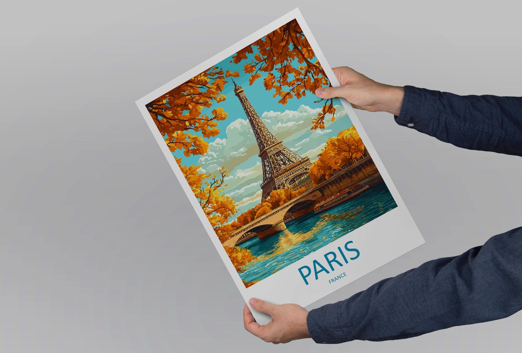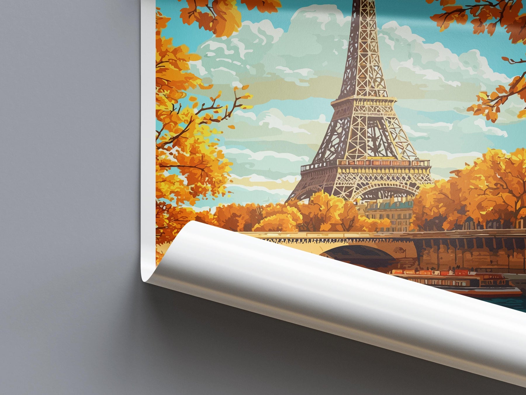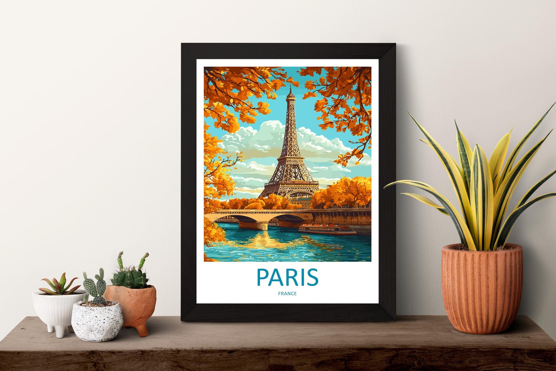 Paris Travel Poster France Wall Art Cityscape Print Eiffel Tower View Illustration Romantic Decor Paris Gift Souvenir Scene