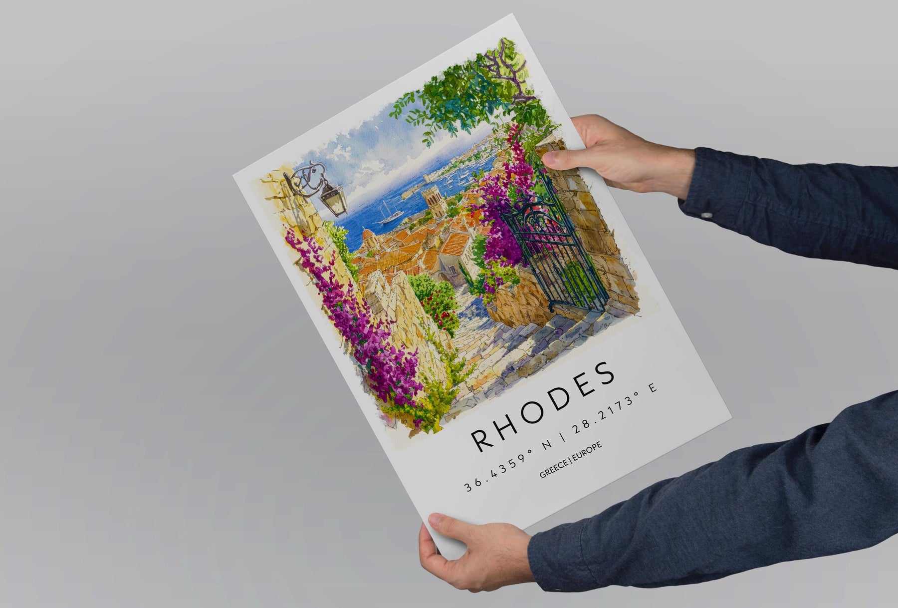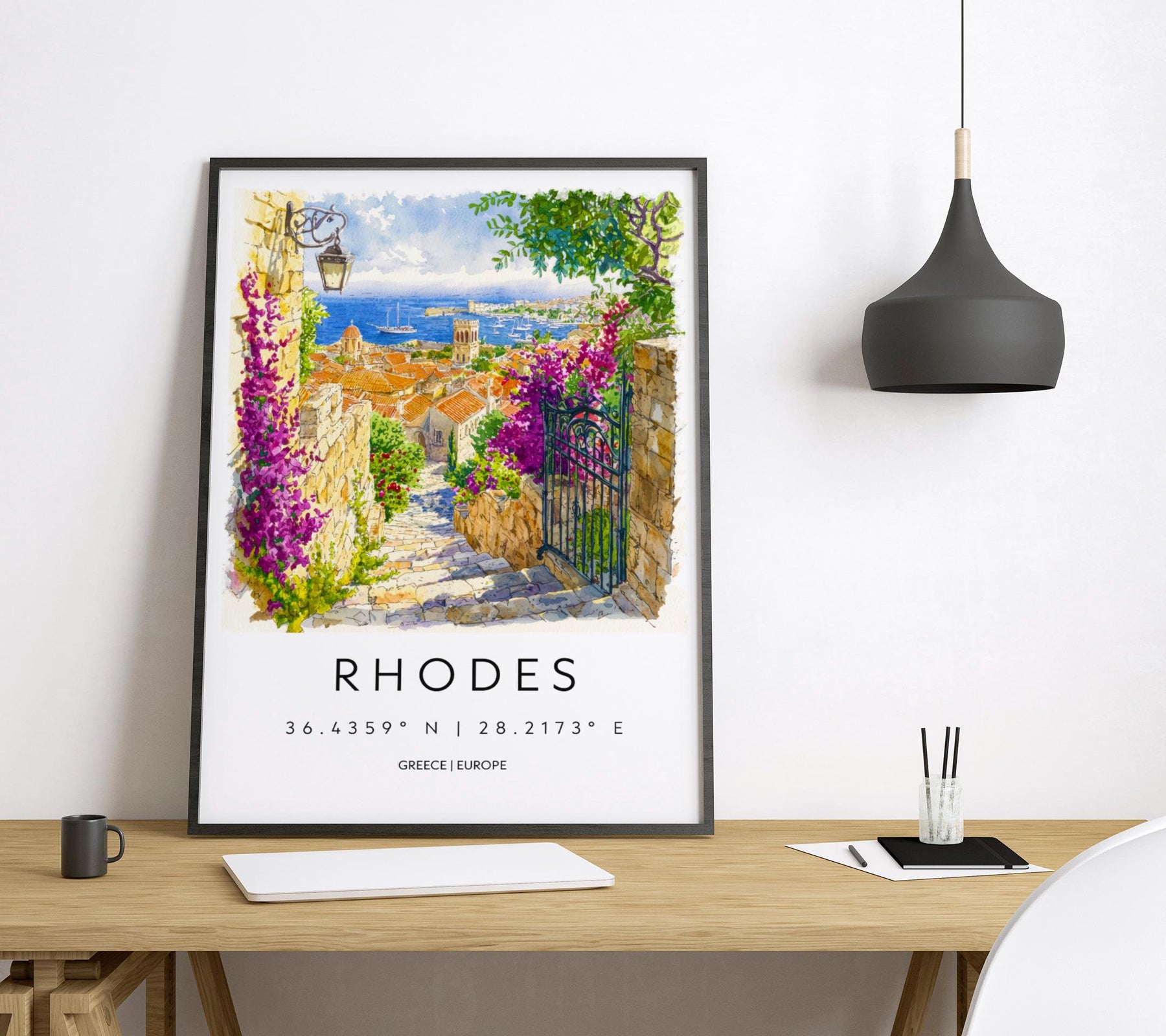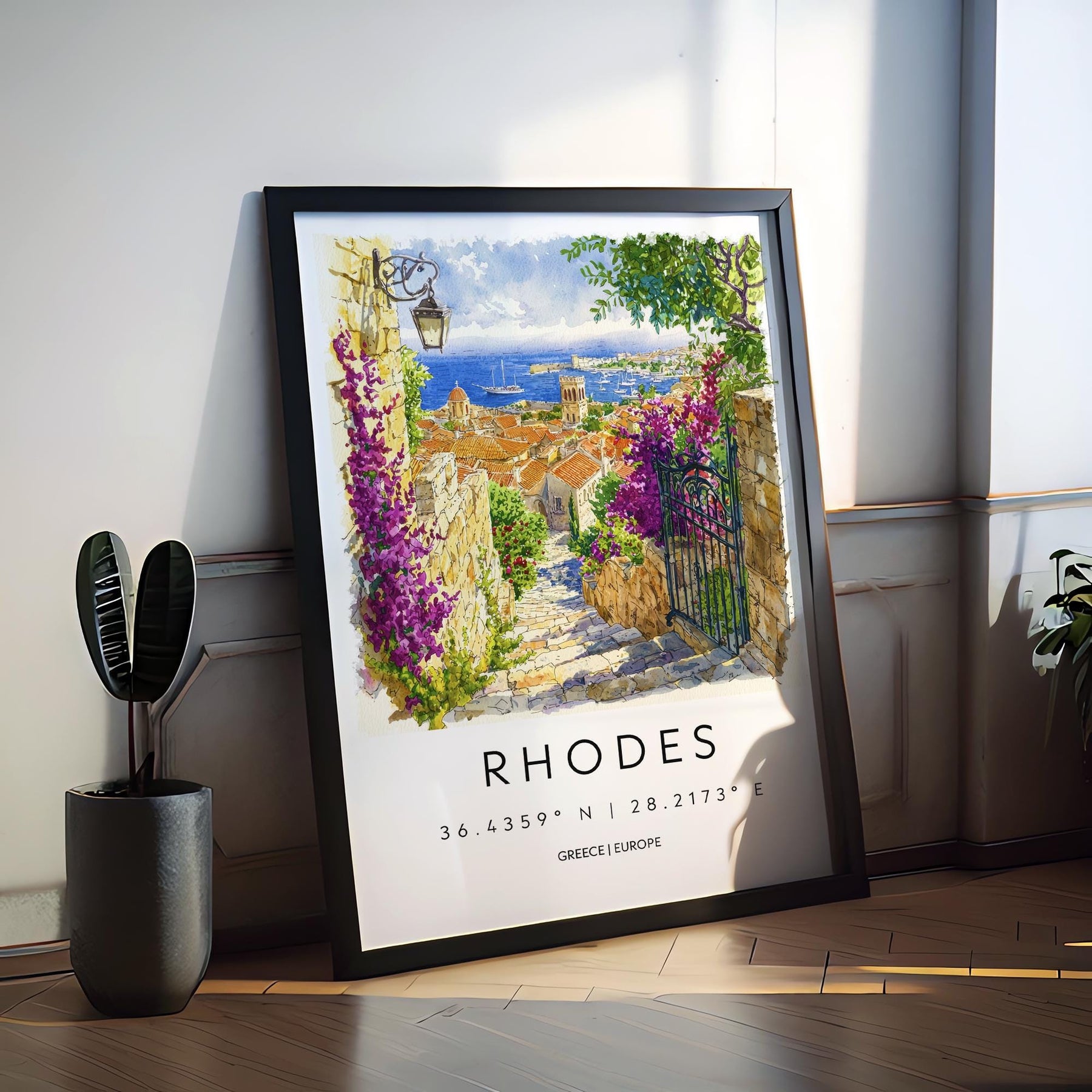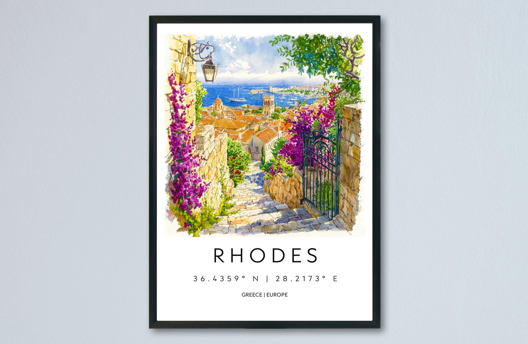 Rhodes Watercolor Poster Rhodes Travel Print Rhodes Wall Art Rhodes Cityscape Painting Rhodes Souvenir Greece Island Decor