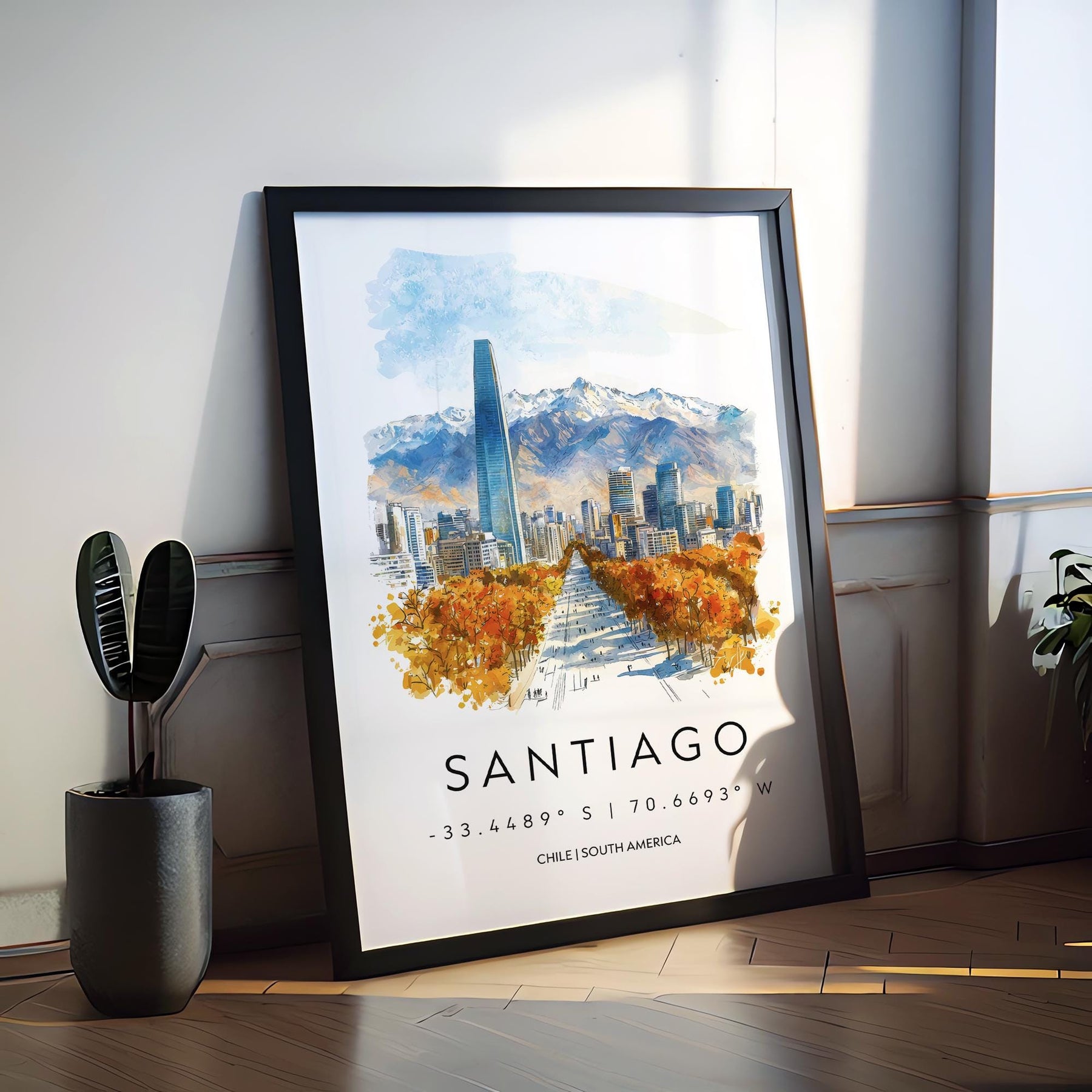 Santiago Watercolor Poster Wall Art Santiago Wall Hanging Home Décor Santiago Gift Art Lovers Chile Wall Art