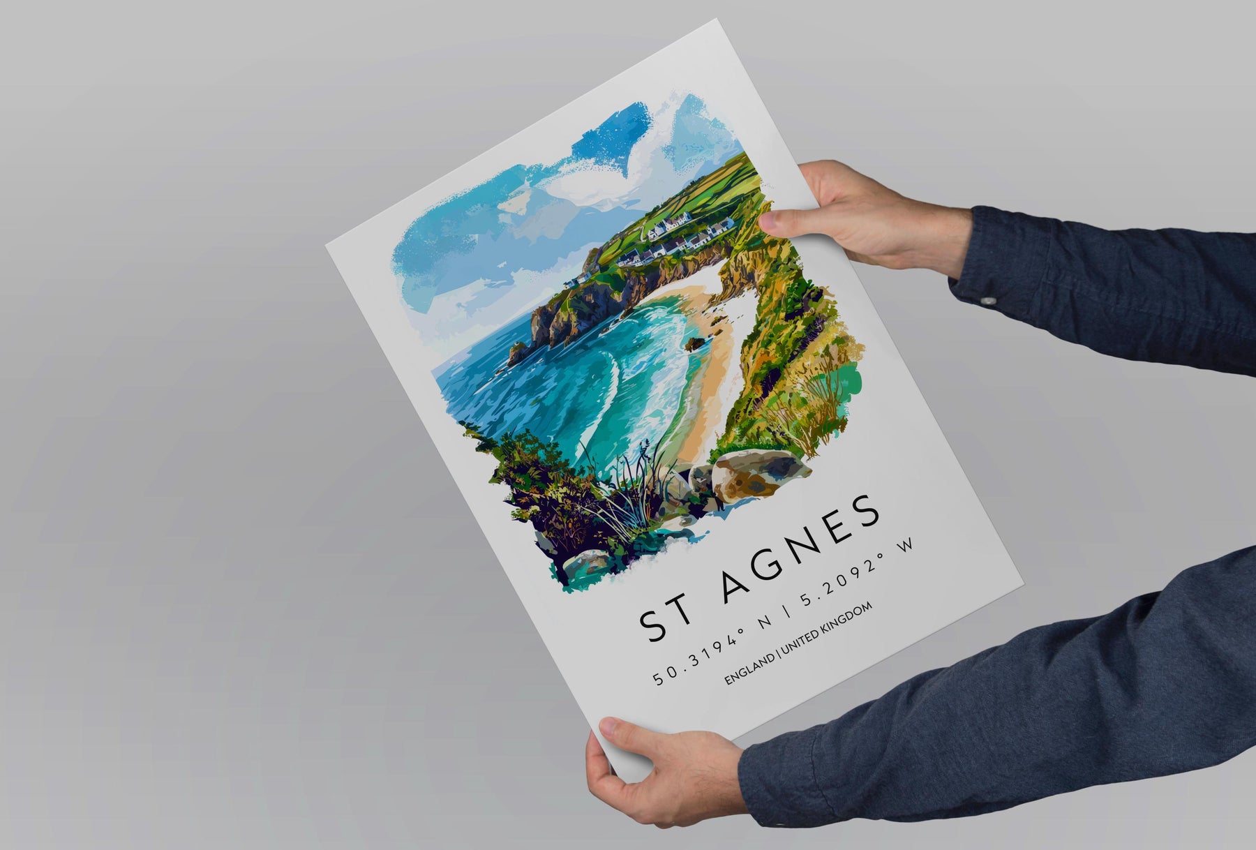 St Agnes Watercolor Poster St Agnes Cornwall Travel Print Wall Art St Agnes Home Decor St Agnes Gift Art Lovers UK Coastal Village