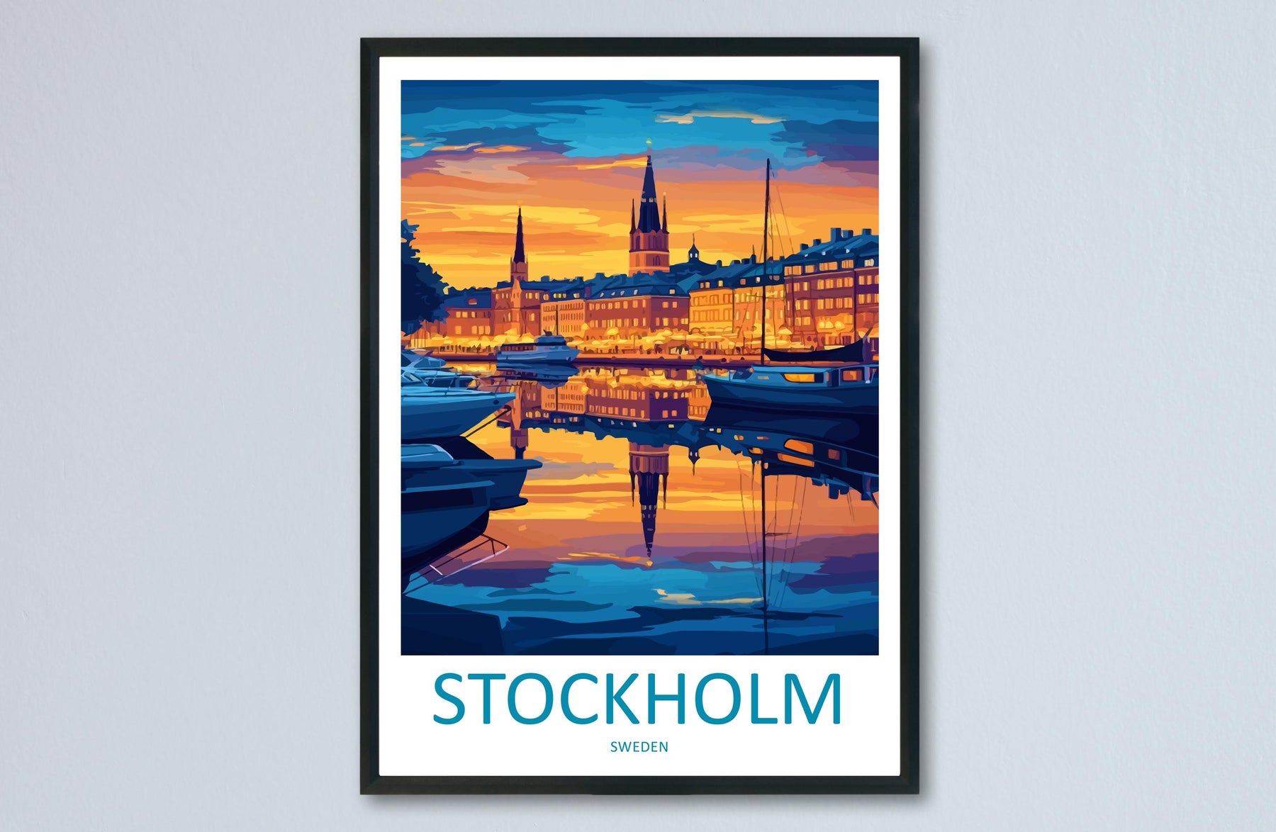 Stockholm Cartoon Travel Poster Sweden Wall Art Cityscape Print Scandinavian Illustration Nordic Decor Stockholm Souvenir Gift