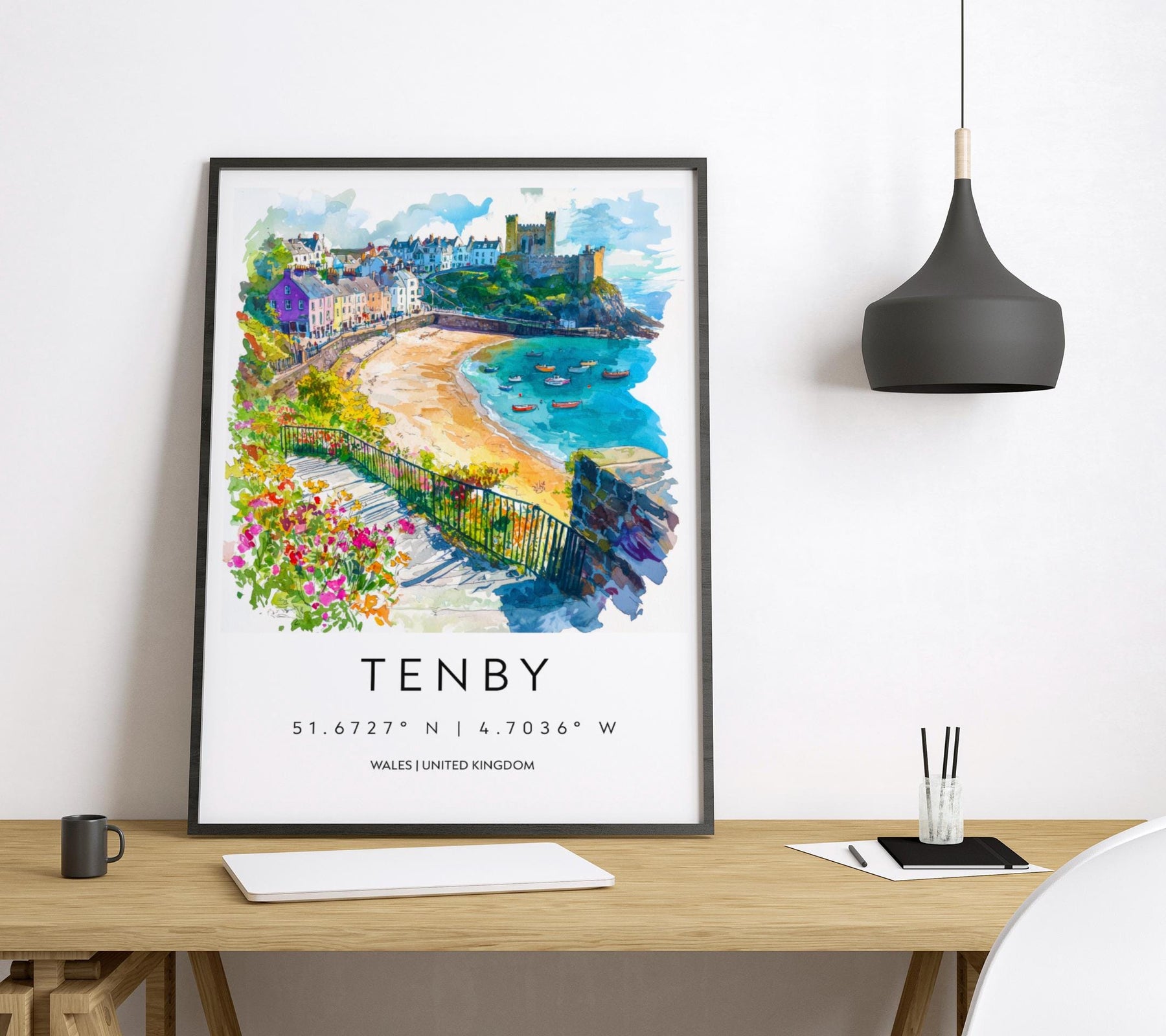 Tenby Watercolor Poster Tenby Travel Print Tenby Wall Art Tenby Seaside Painting Tenby Souvenir Wales Coastal Decor