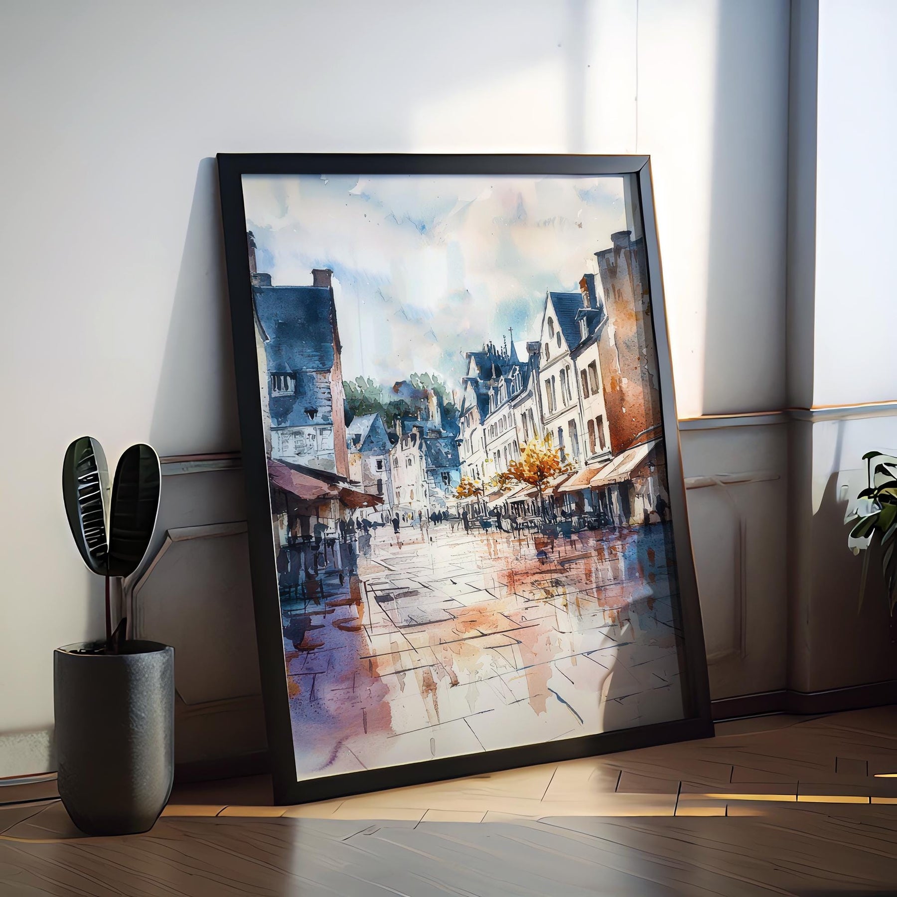 Tours France Watercolor Poster Tours Travel Print French City Wall Art Tours Architecture Decor Loire Valley Scene Historic Europe Print