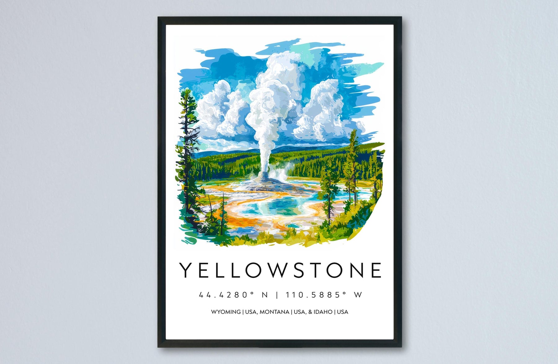 Yellowstone Watercolor Poster Wall Art Yellowstone Wall Hanging Home Décor Yellowstone Gift Art Lovers United States Wall Art