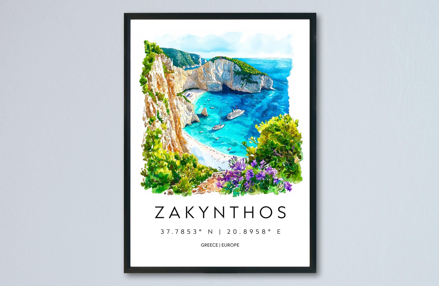 Zakynthos Watercolor Poster Zakynthos Greece Travel Print Wall Art Zakynthos Home Decor Zakynthos Gift Art Lovers Greece Art Zakynthos
